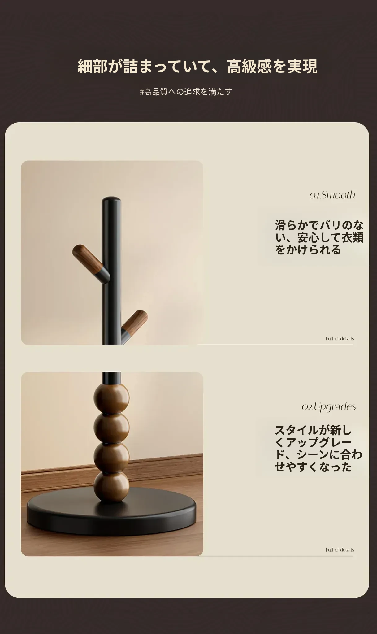 原木ホワイト-アップグレード8フック【衣類掛け量アップ】