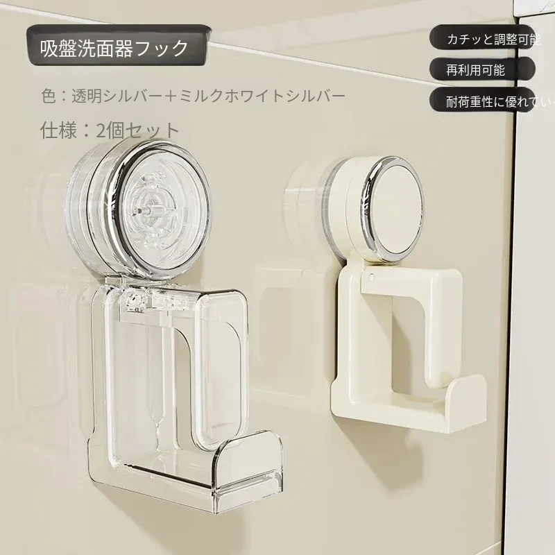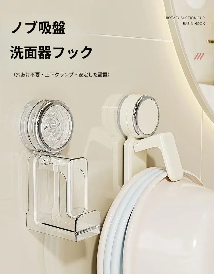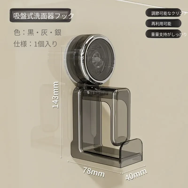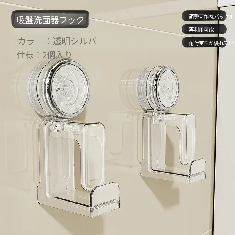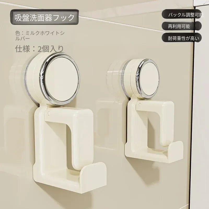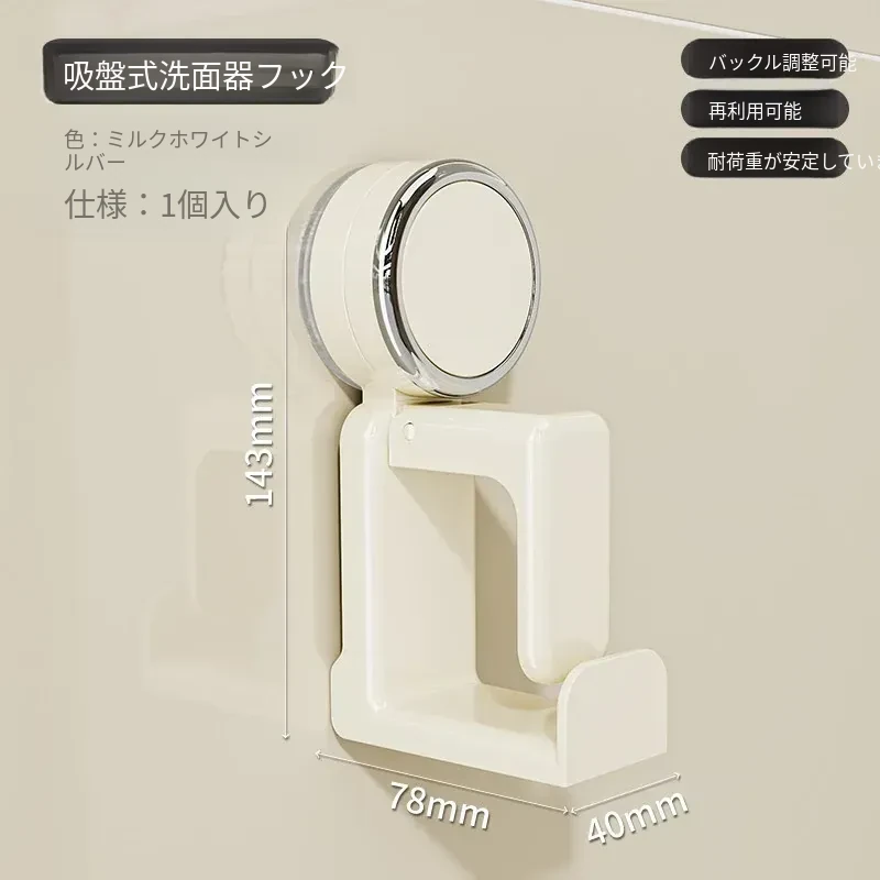 吸盤式洗面器フック - バスルーム壁掛け、穴あけ不要!滑り止め設計で安心の収納、浴室や洗面所の必需品。魅力的なデザインでスペースを有効活用!