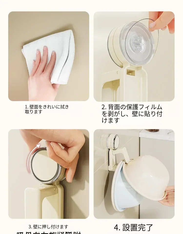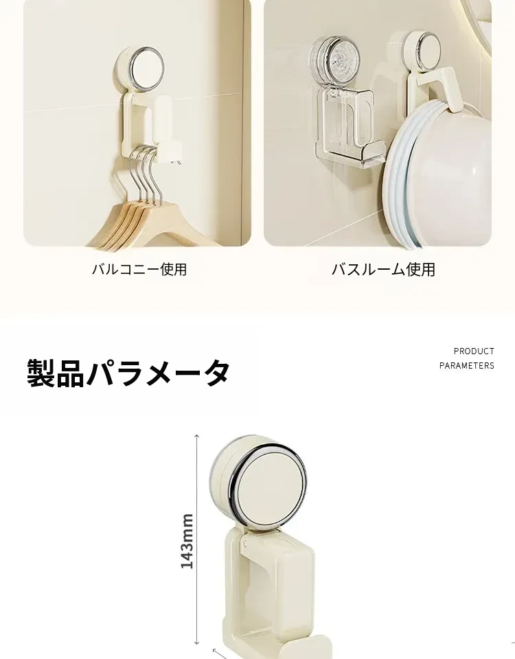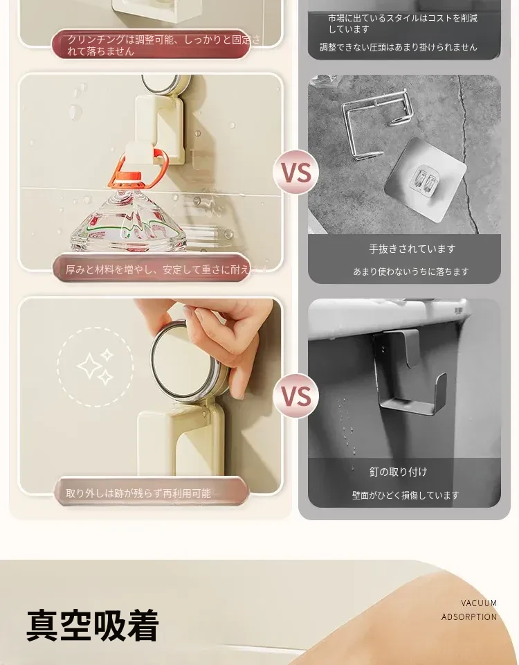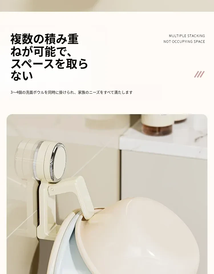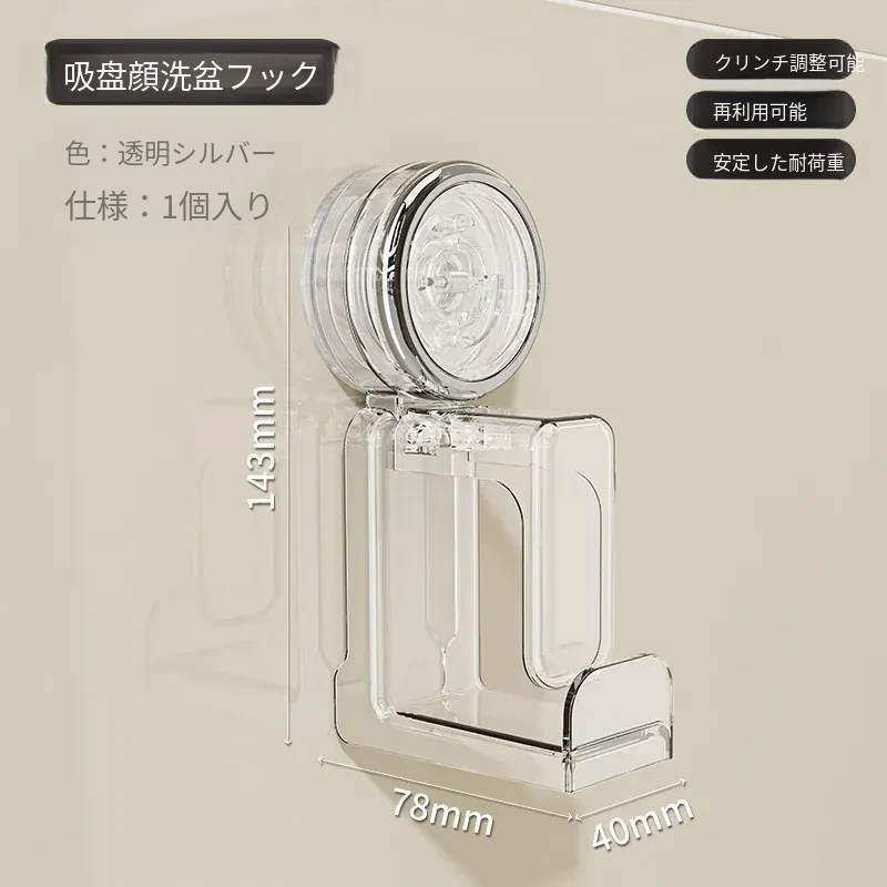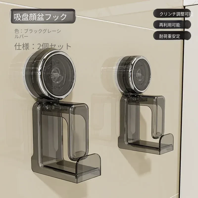 吸盤式洗面器フック - バスルーム壁掛け、穴あけ不要!滑り止め設計で安心の収納、浴室や洗面所の必需品。魅力的なデザインでスペースを有効活用!