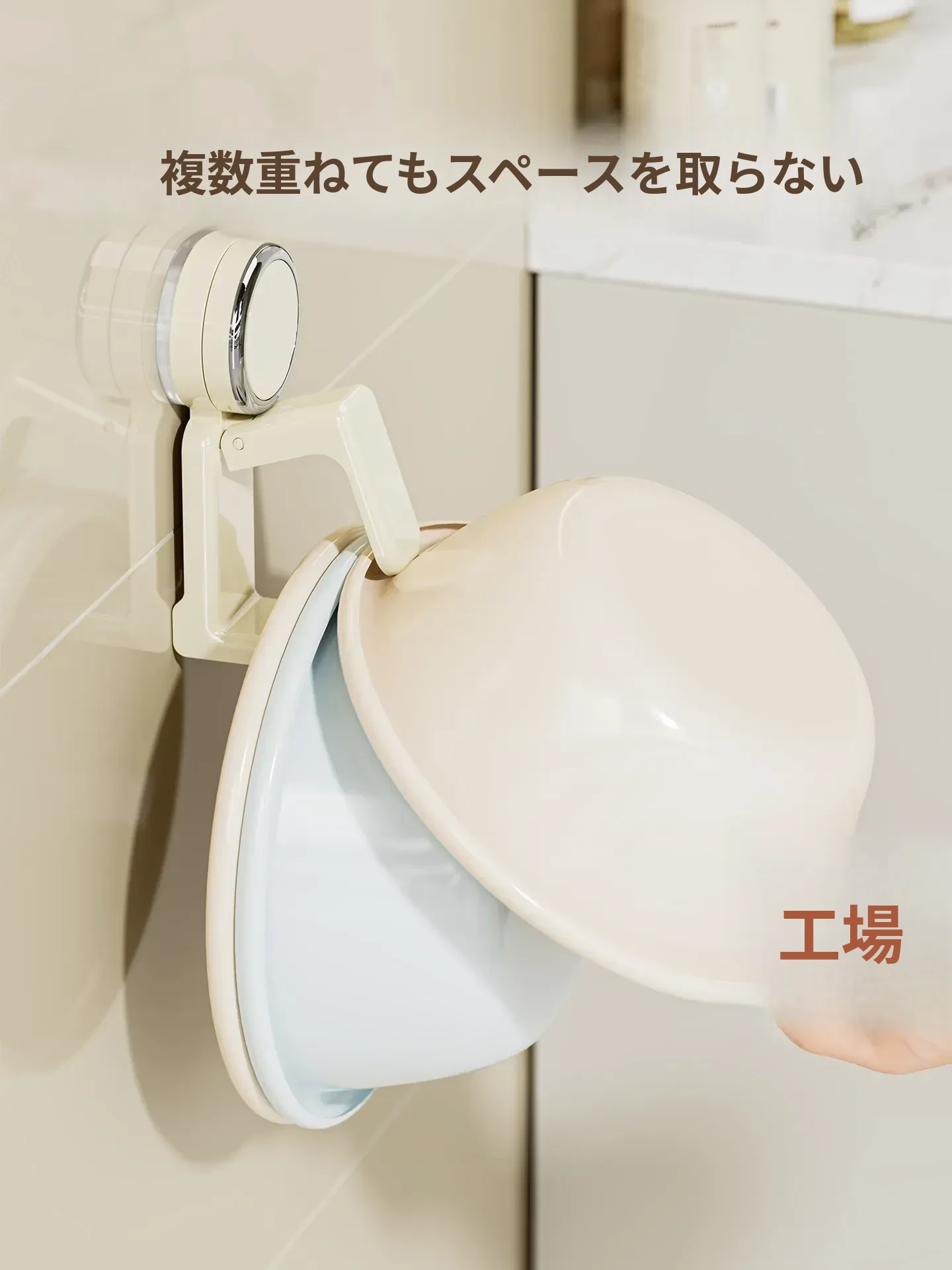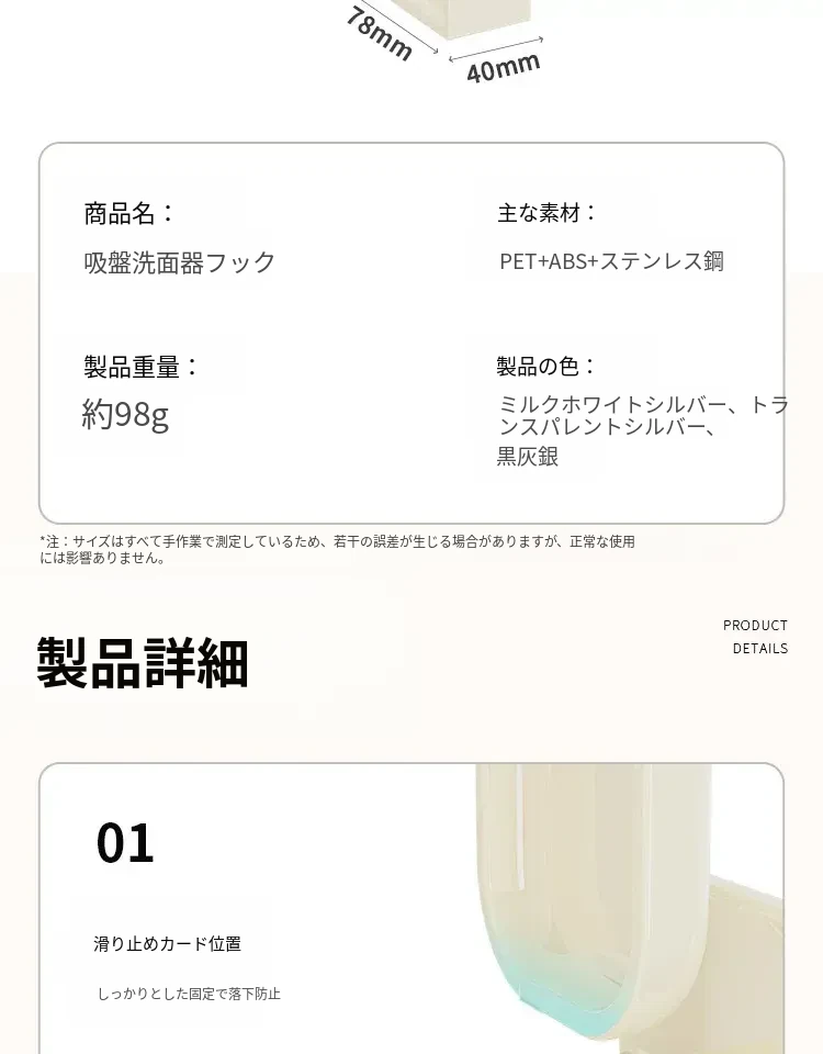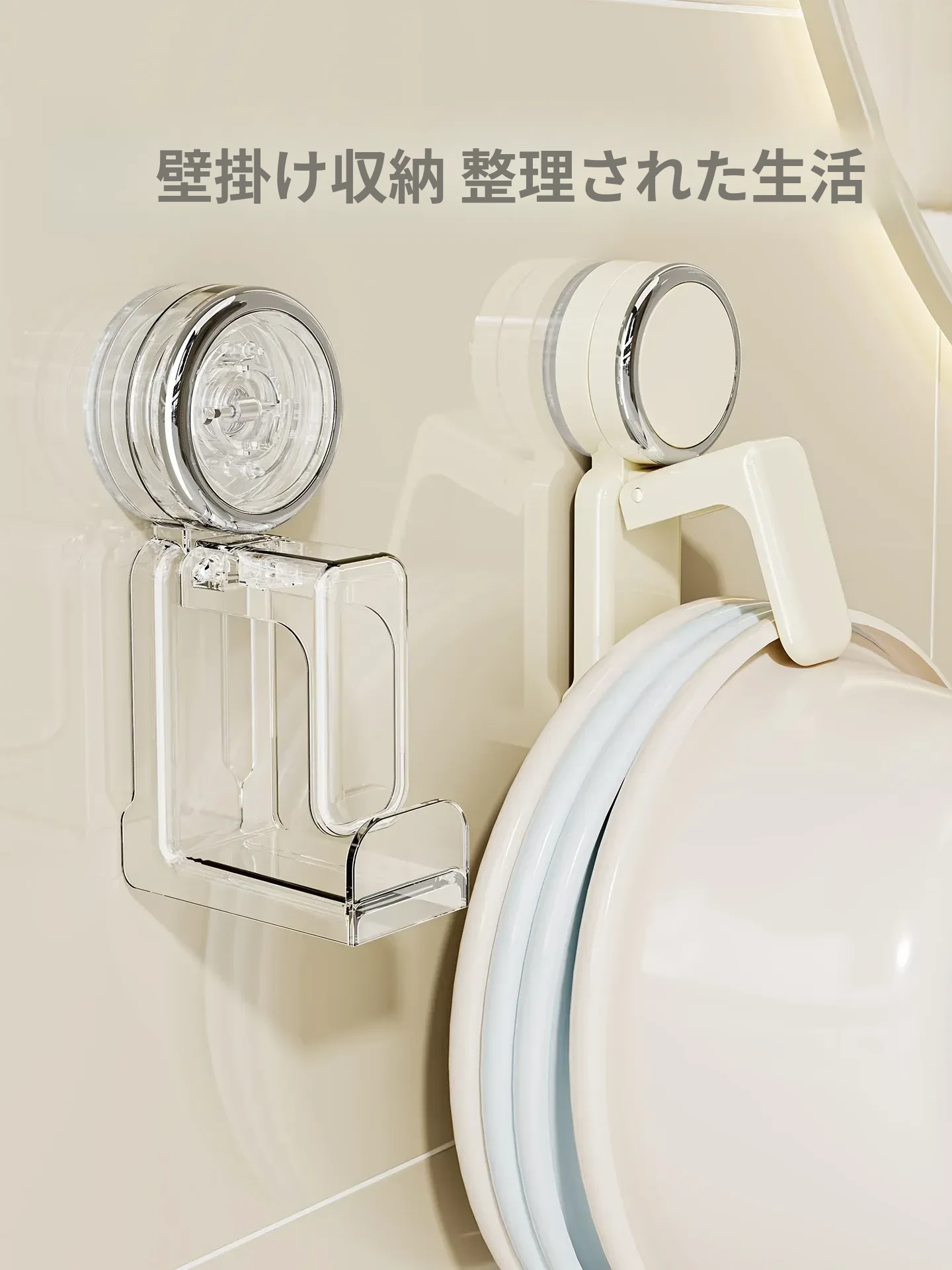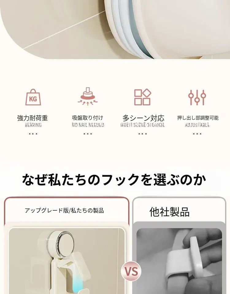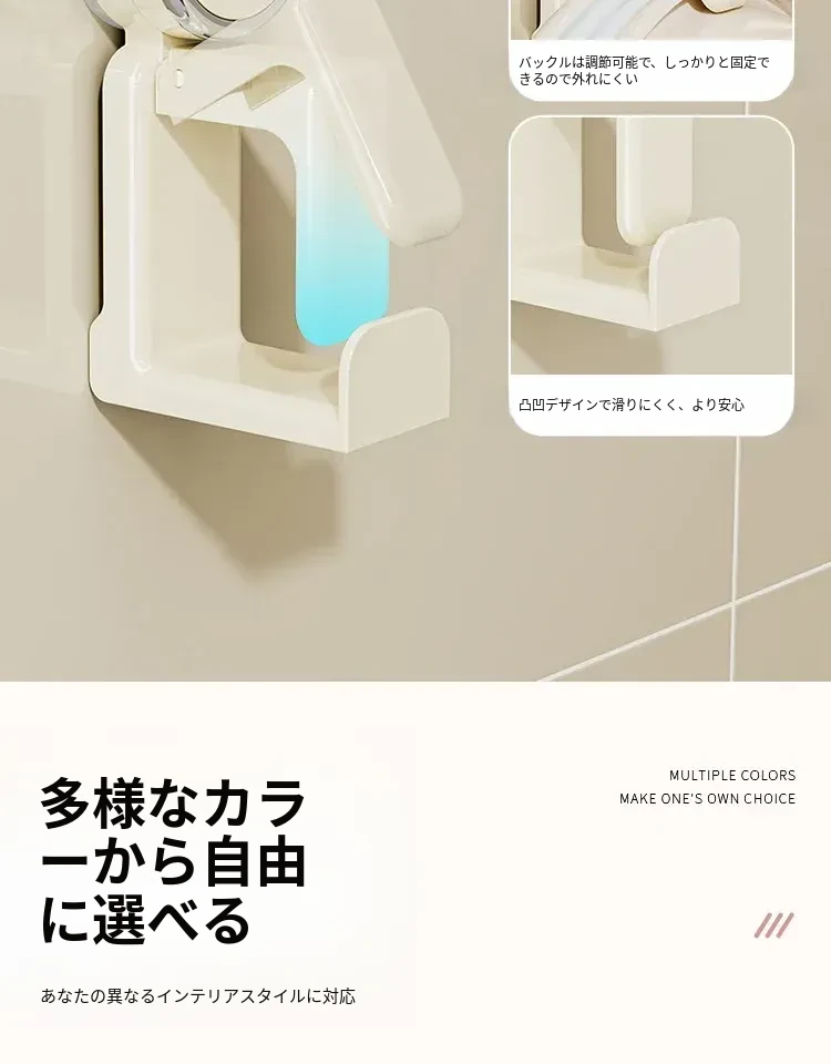 吸盤式洗面器フック - バスルーム壁掛け、穴あけ不要!滑り止め設計で安心の収納、浴室や洗面所の必需品。魅力的なデザインでスペースを有効活用!