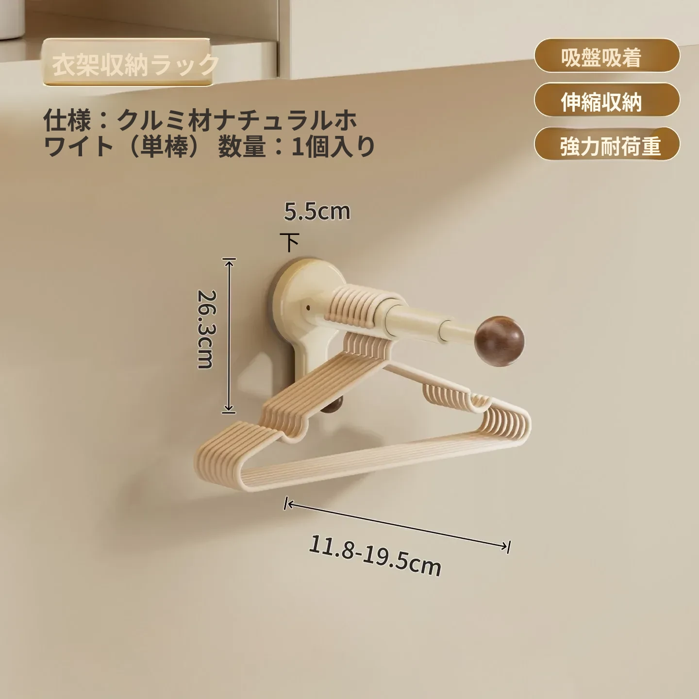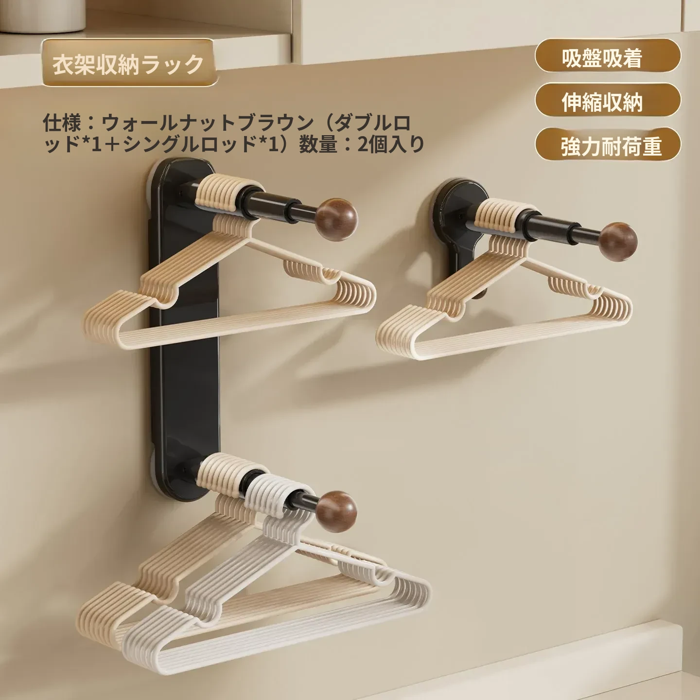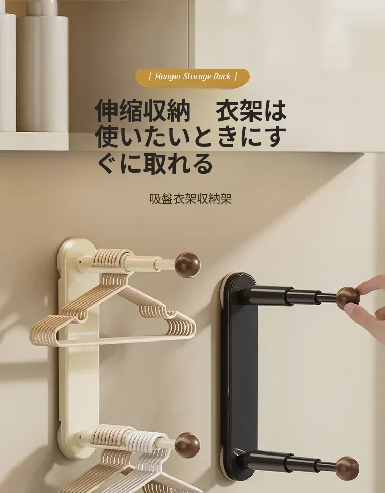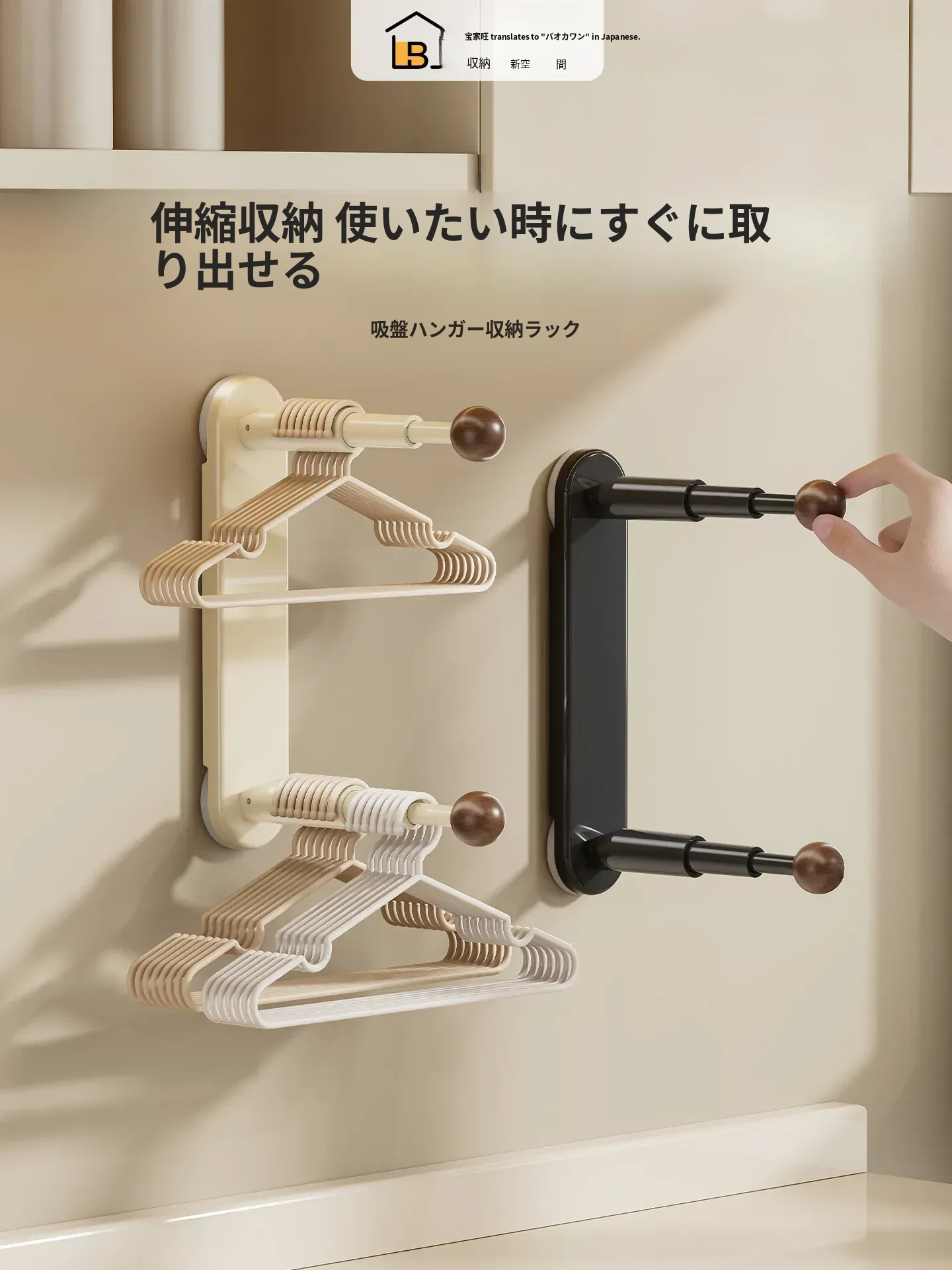 穴あけ不要!ベランダで大活躍の伸縮式吸盤ハンガー収納神器 - 壁掛け多機能で無痕、家中どこでも使える便利な物干し&収納ラック!