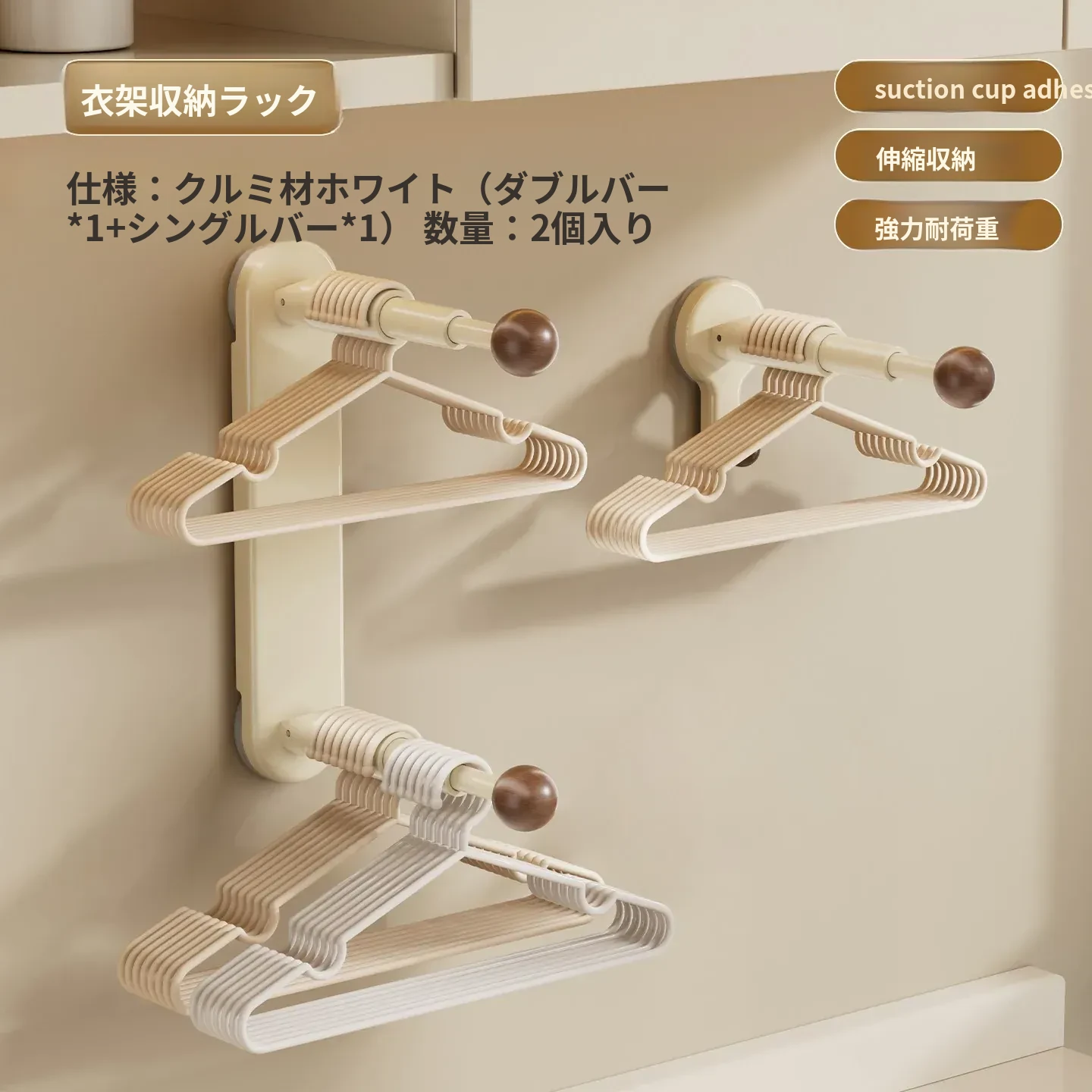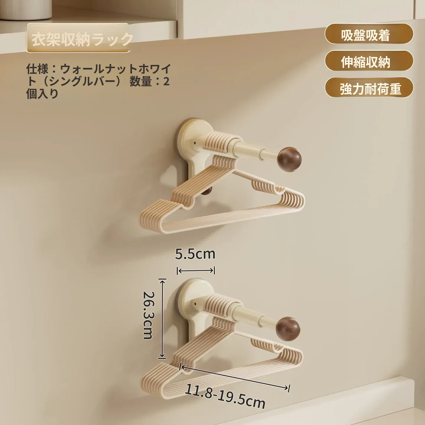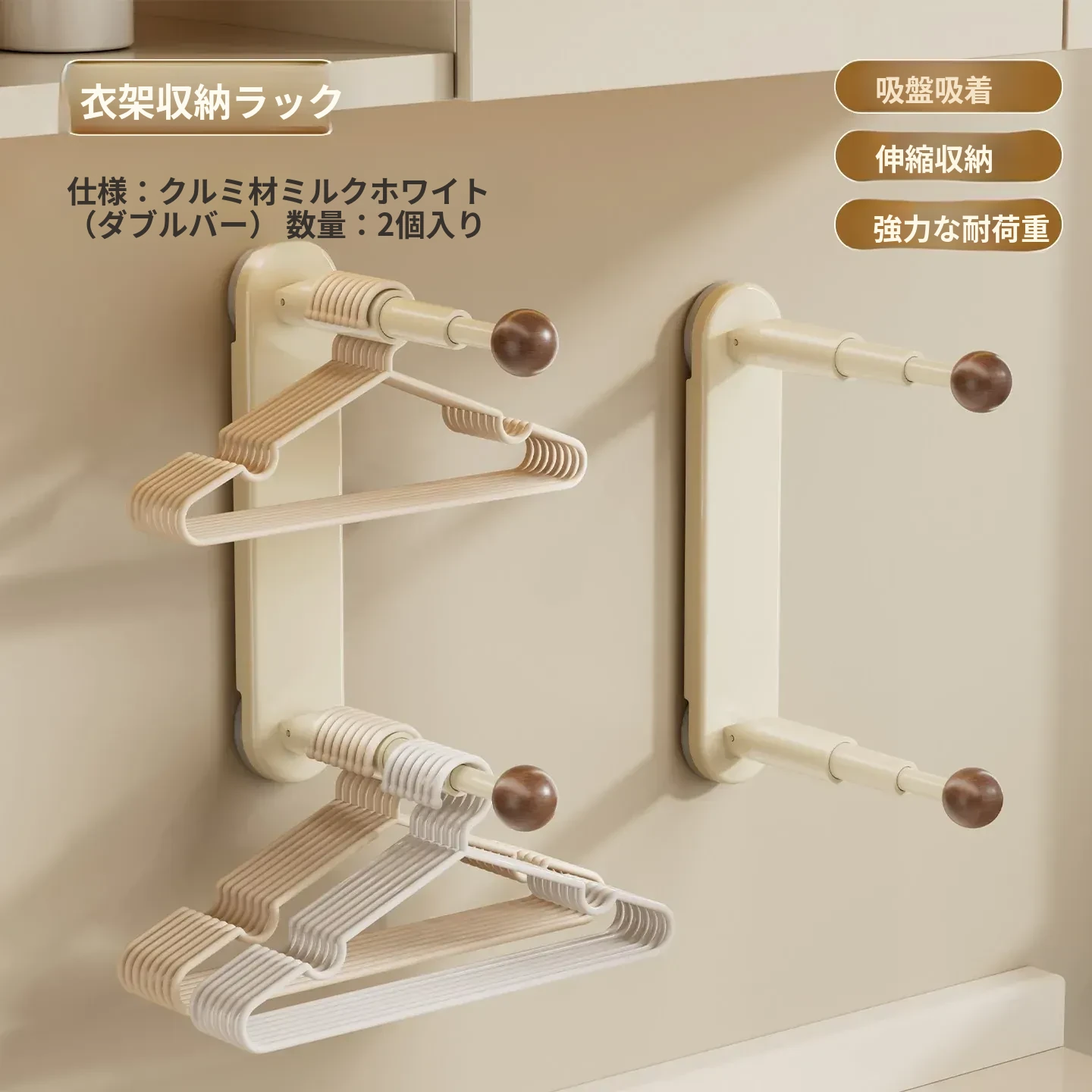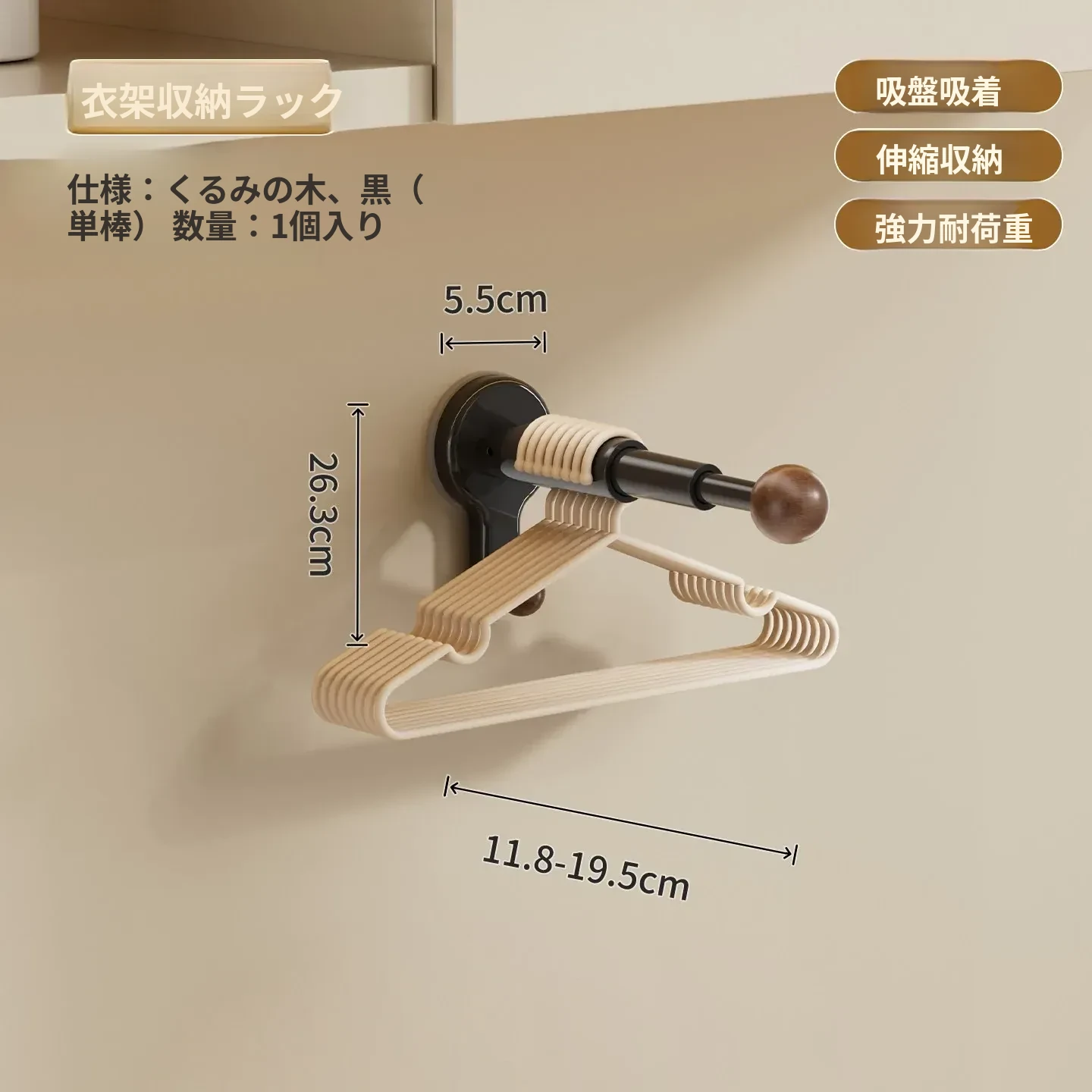 穴あけ不要!ベランダで大活躍の伸縮式吸盤ハンガー収納神器 - 壁掛け多機能で無痕、家中どこでも使える便利な物干し&収納ラック!