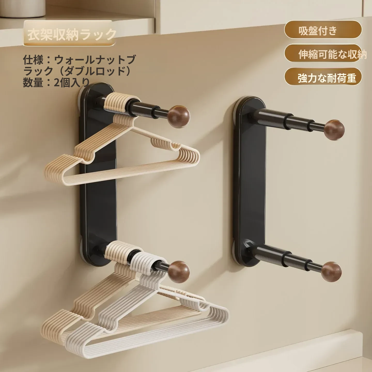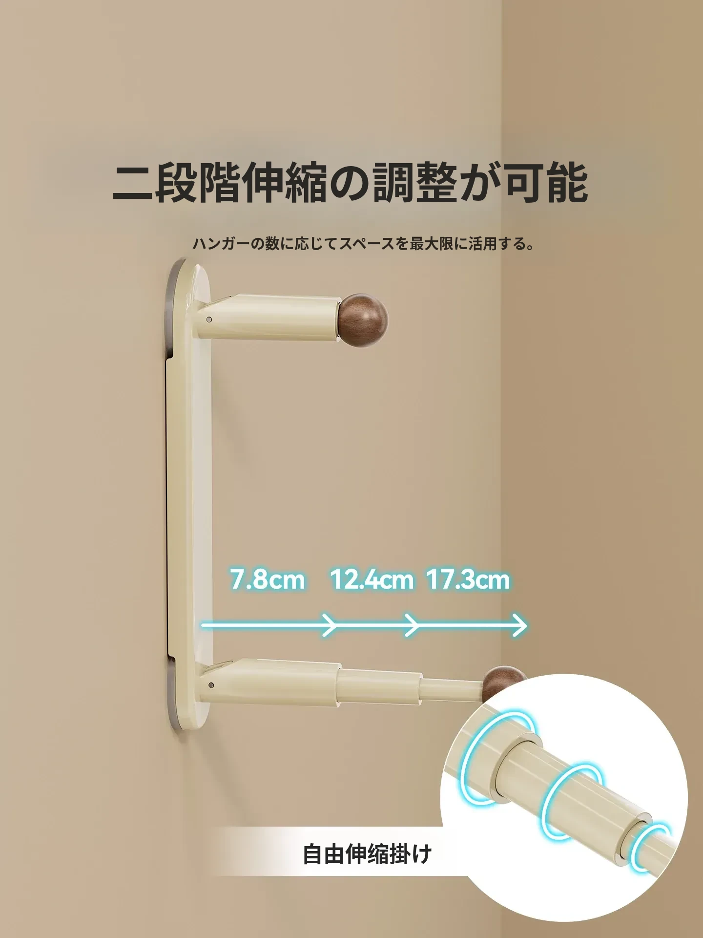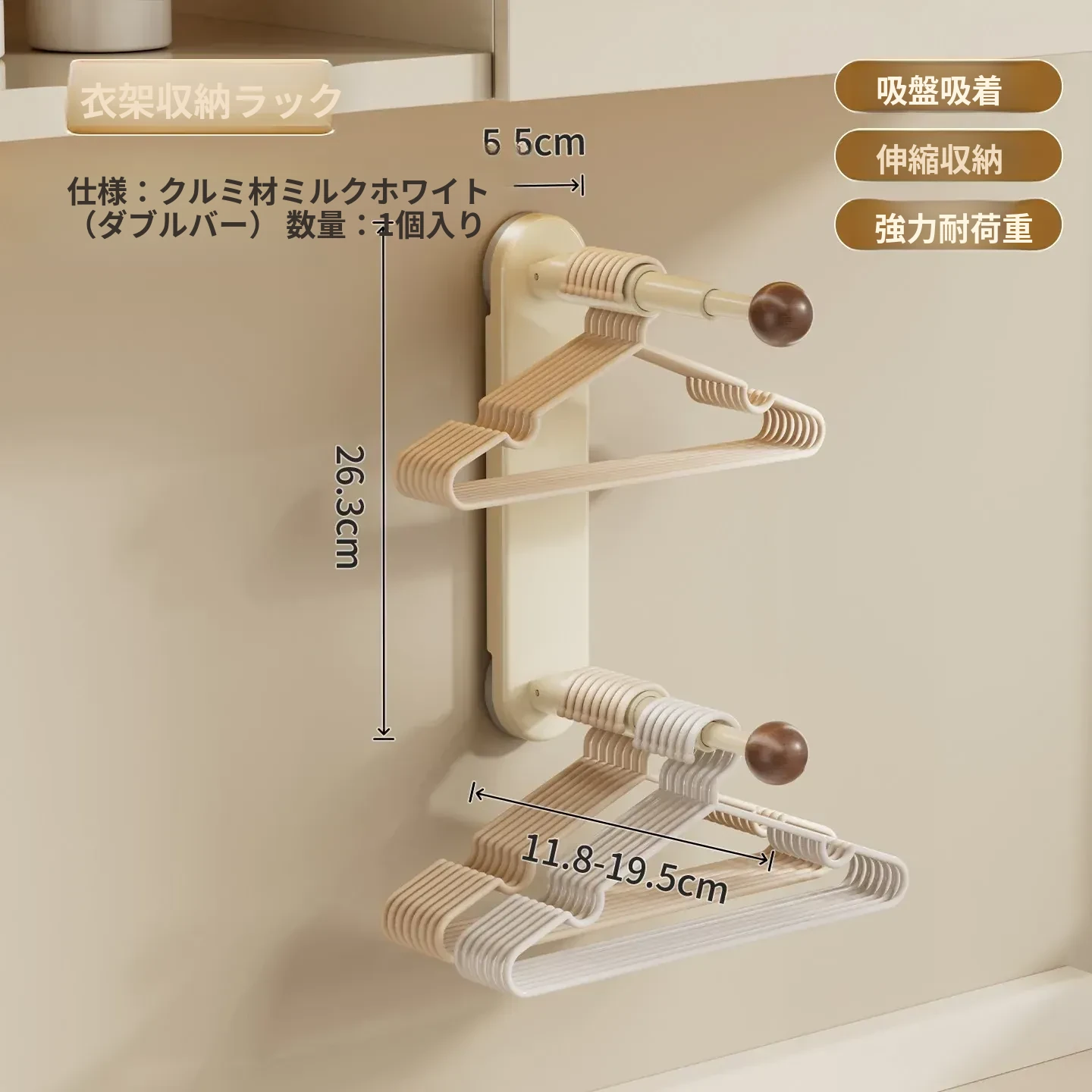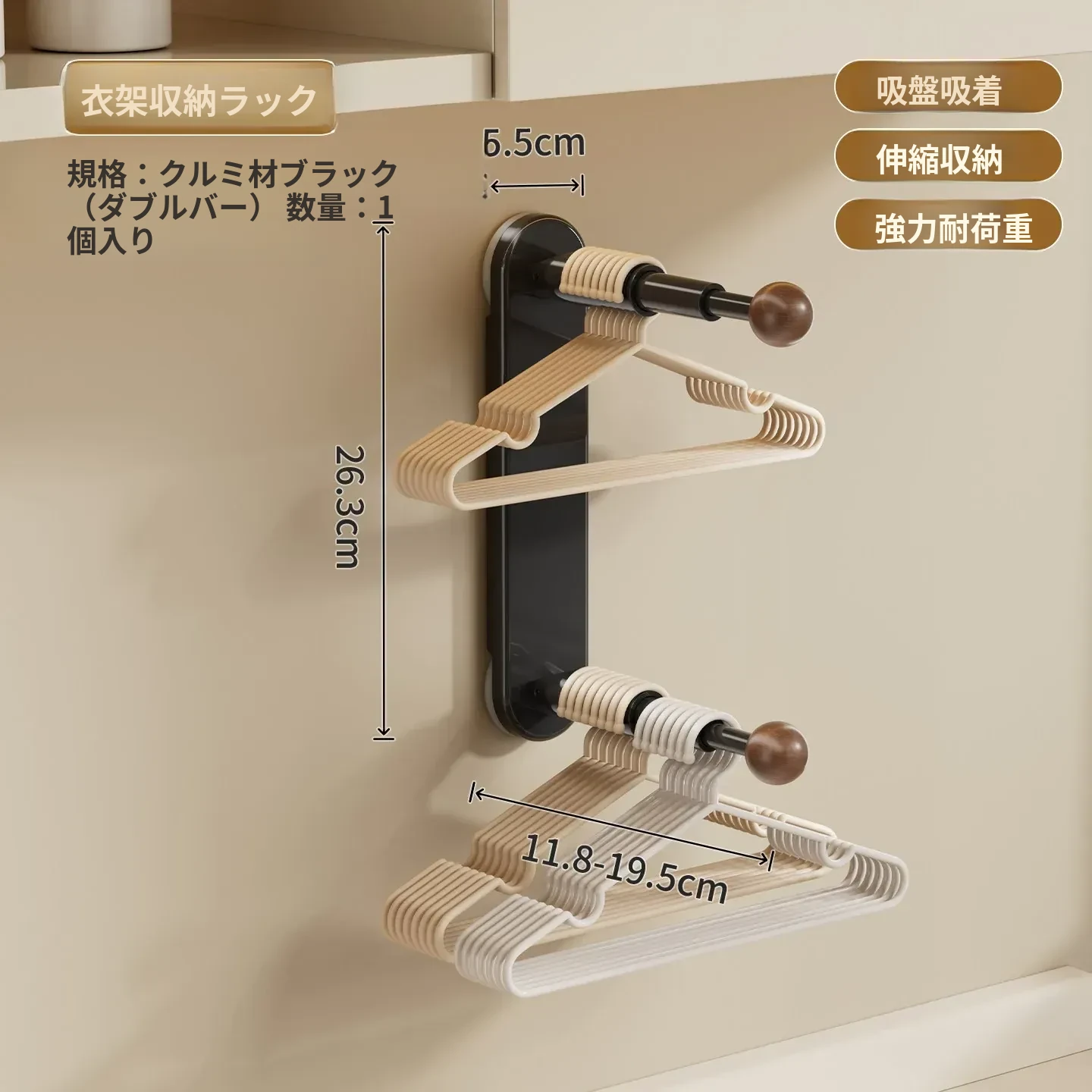 穴あけ不要!ベランダで大活躍の伸縮式吸盤ハンガー収納神器 - 壁掛け多機能で無痕、家中どこでも使える便利な物干し&収納ラック!
