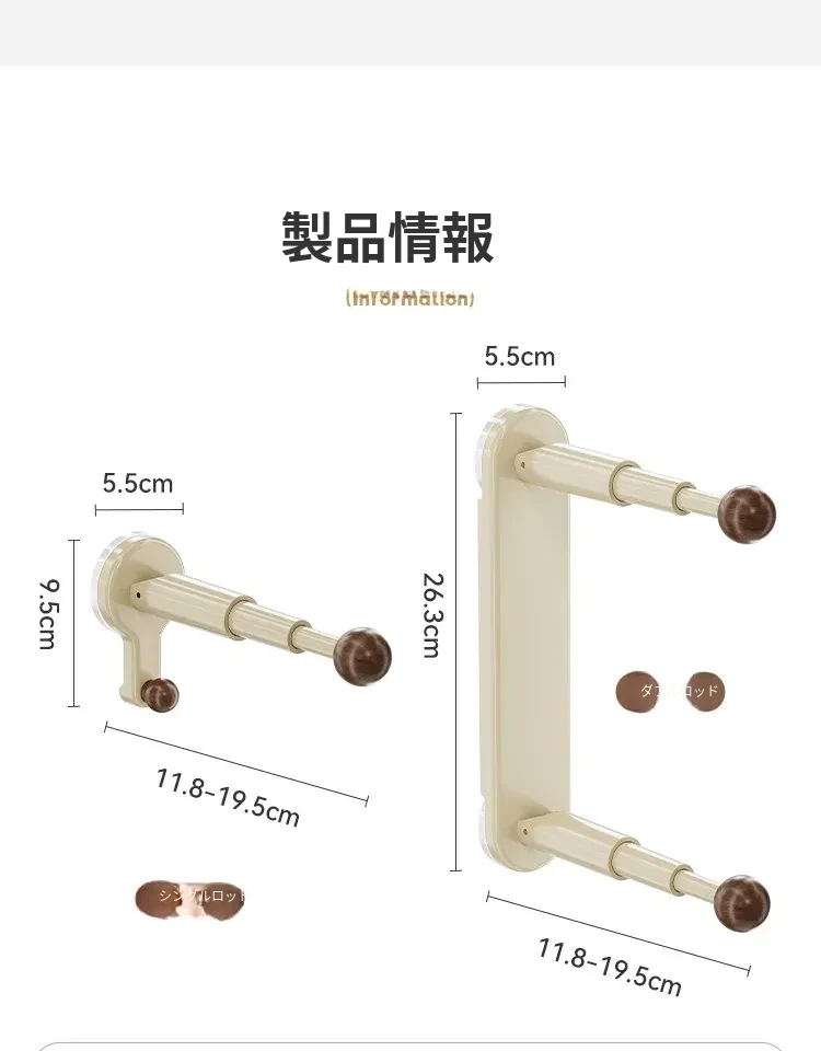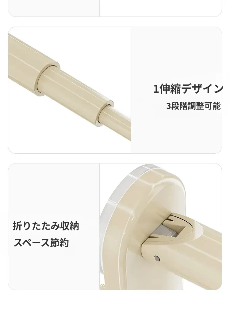 【クルミ木ミルクホワイト】双杆1個セット⭐折りたたみ/伸縮可能