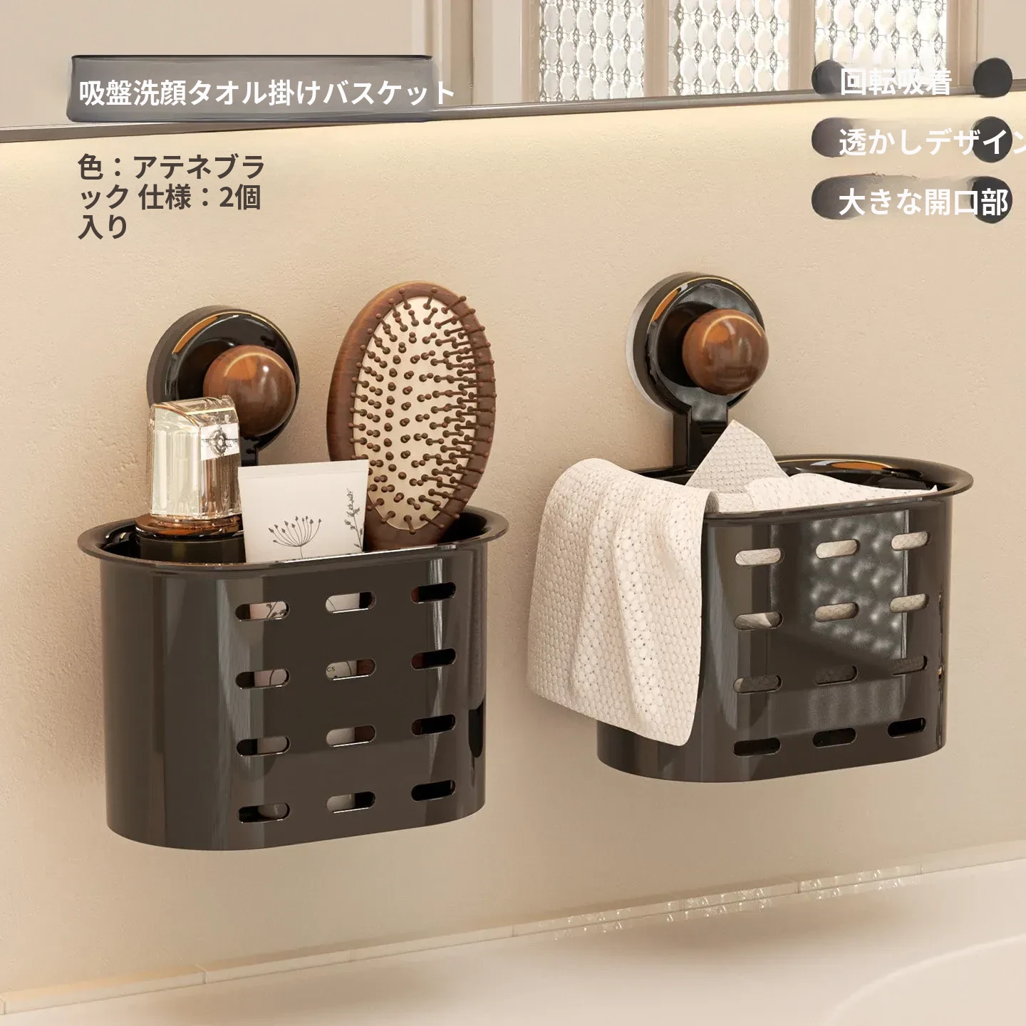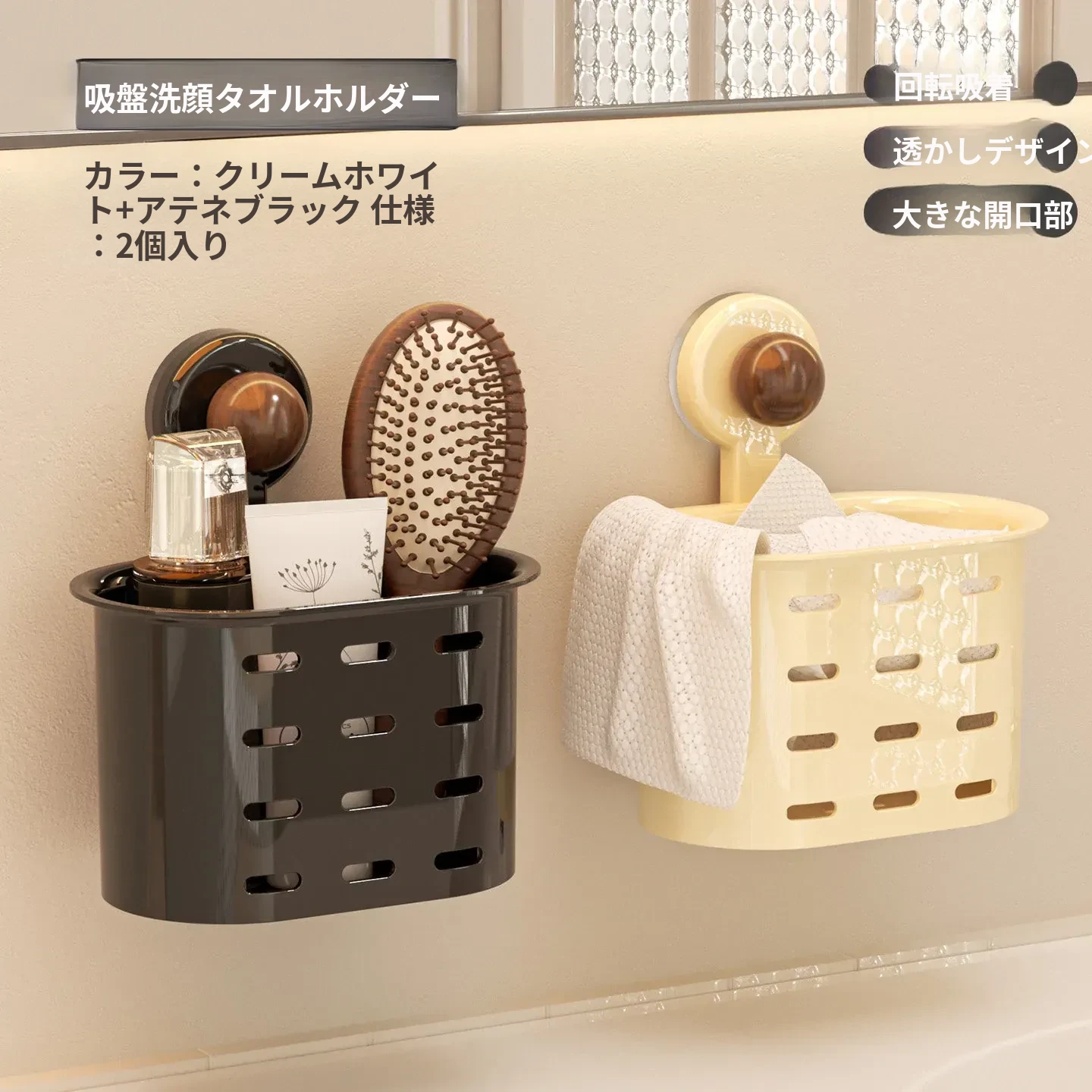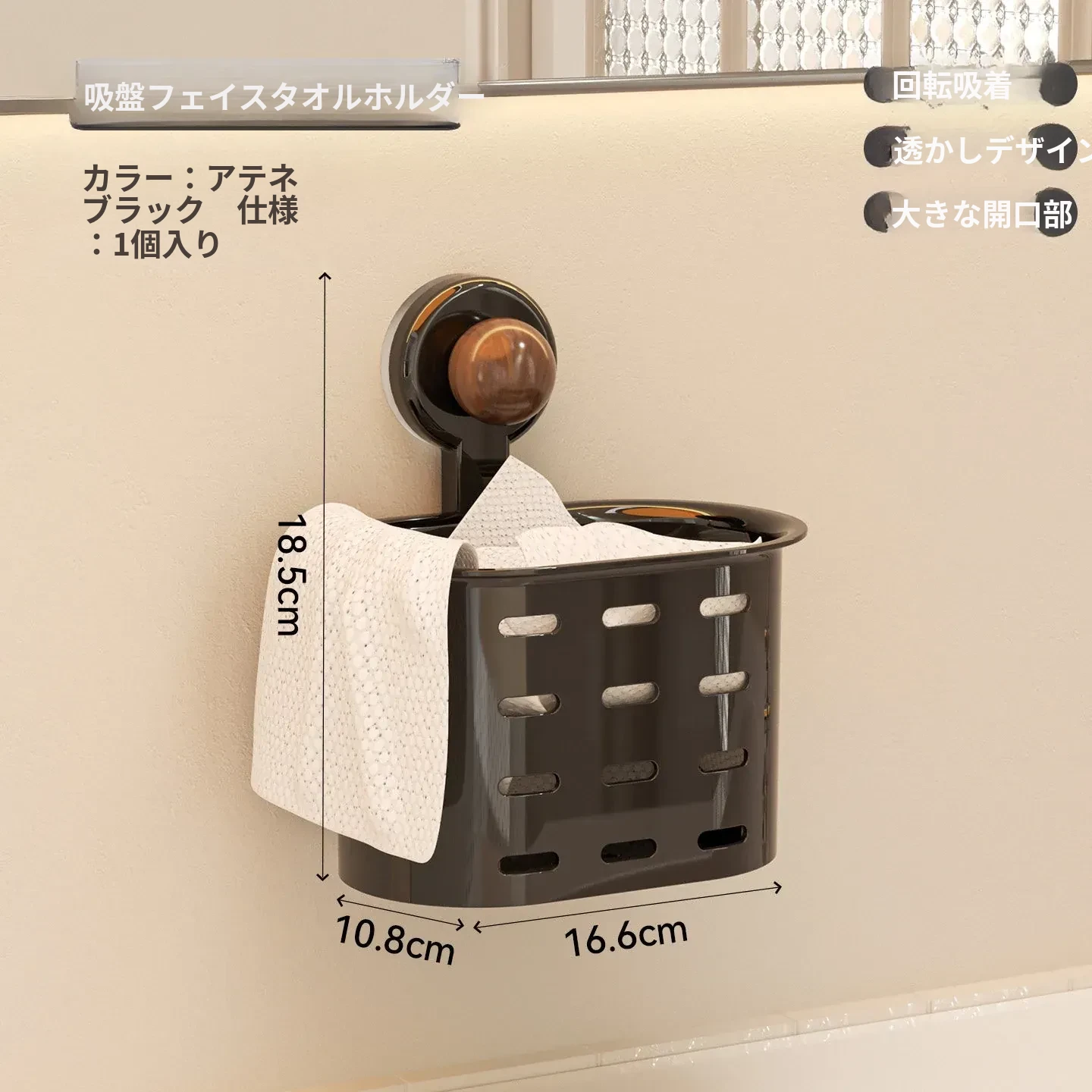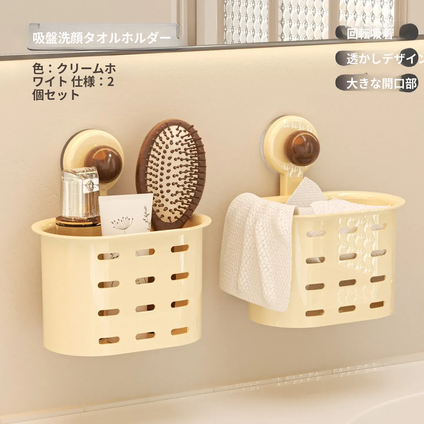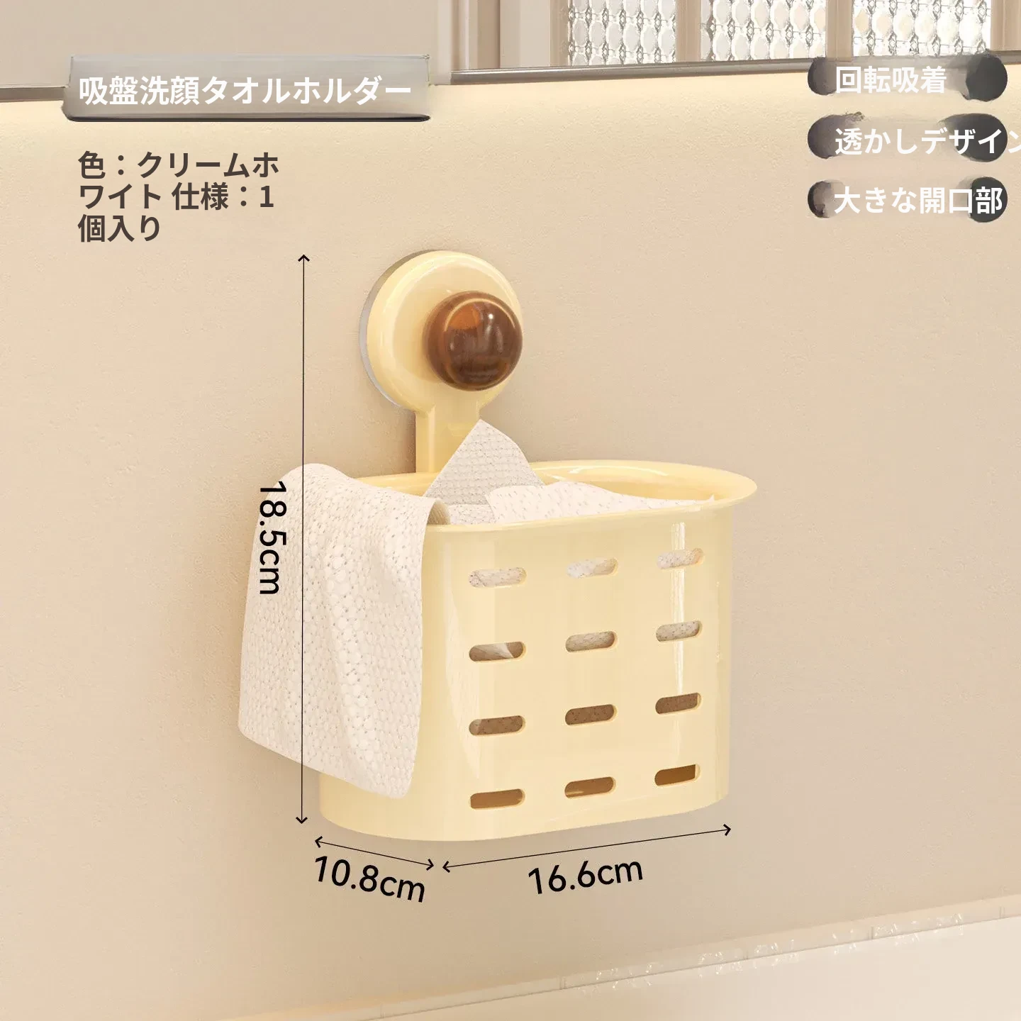 吸盤付き二次洗顔タオル収納ボックス - 壁掛けで便利!バスルームの水切り機能付き、柔らかいフェイスタオルをすっきり収納。清潔感あふれる空間を演出!