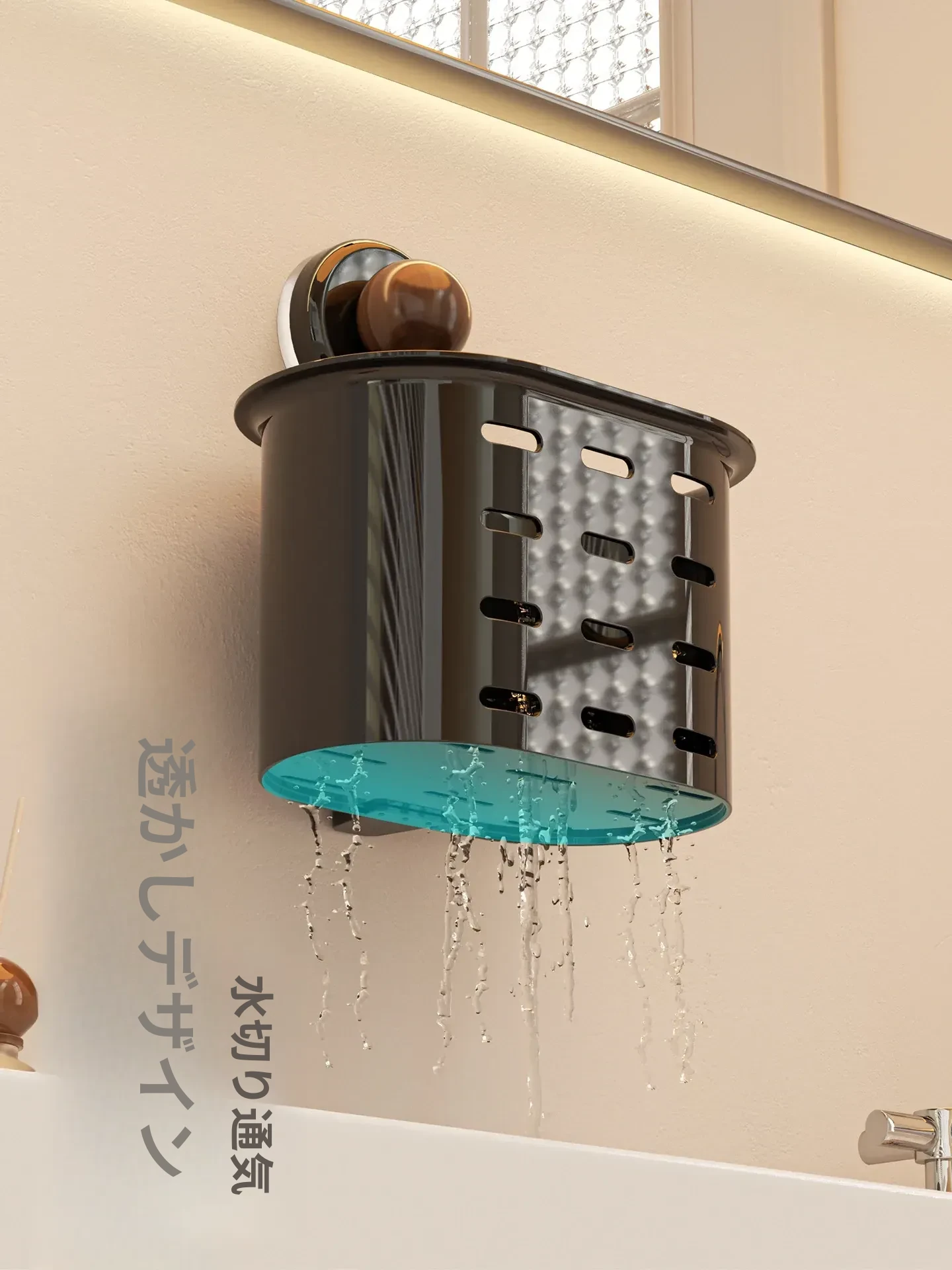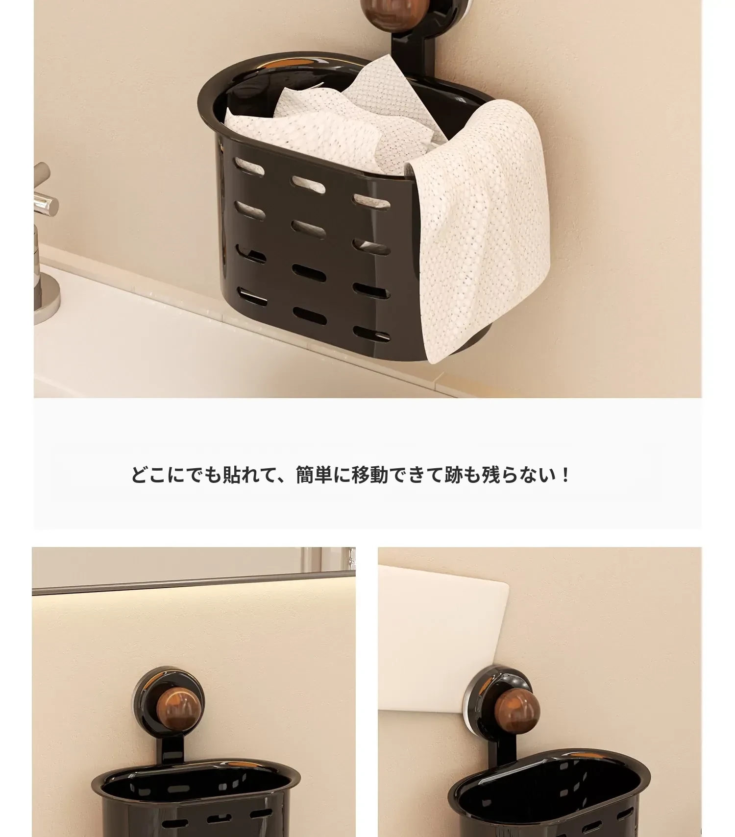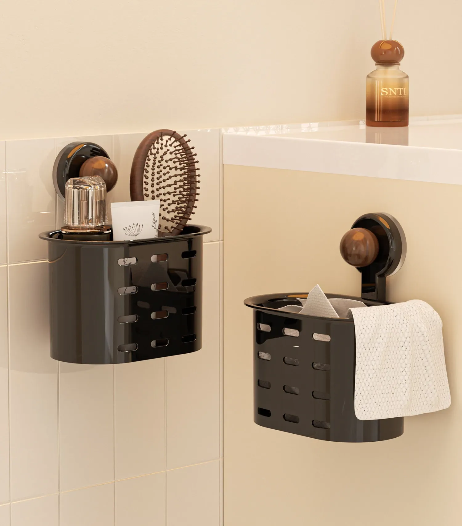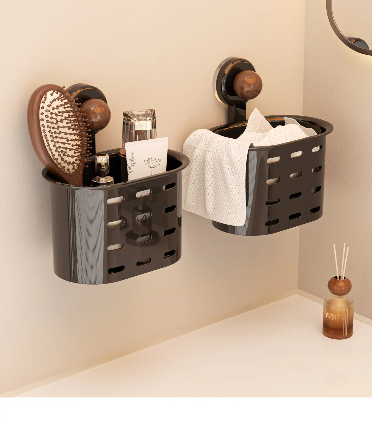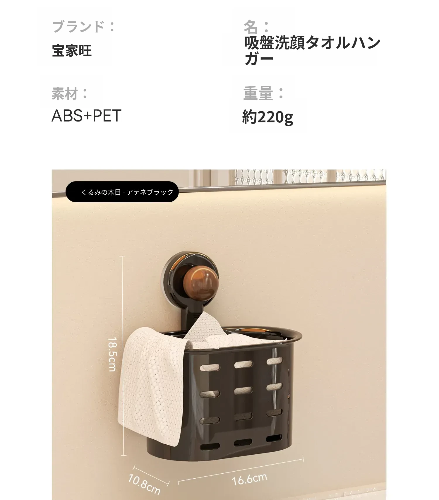 吸盤付き二次洗顔タオル収納ボックス - 壁掛けで便利!バスルームの水切り機能付き、柔らかいフェイスタオルをすっきり収納。清潔感あふれる空間を演出!