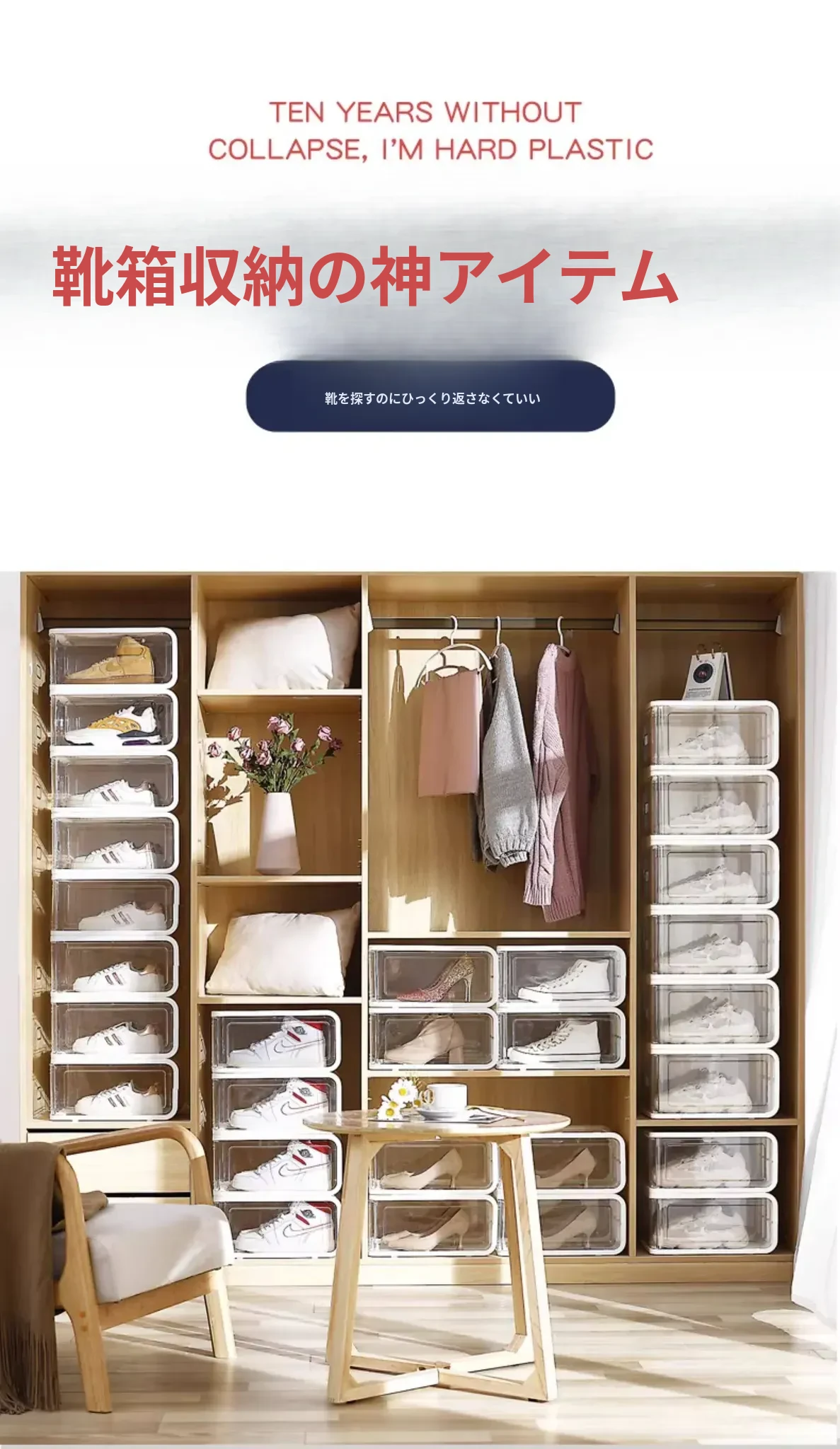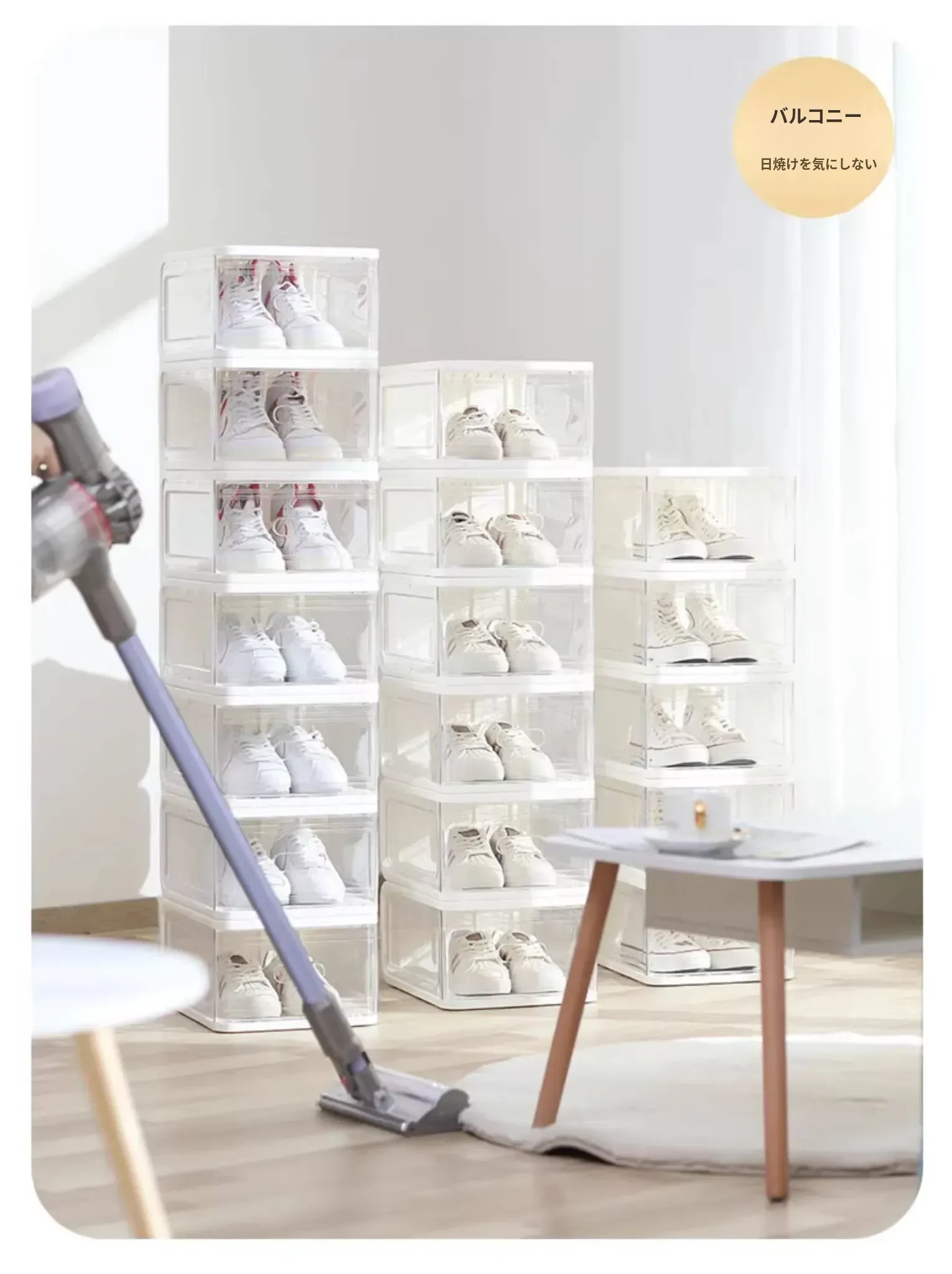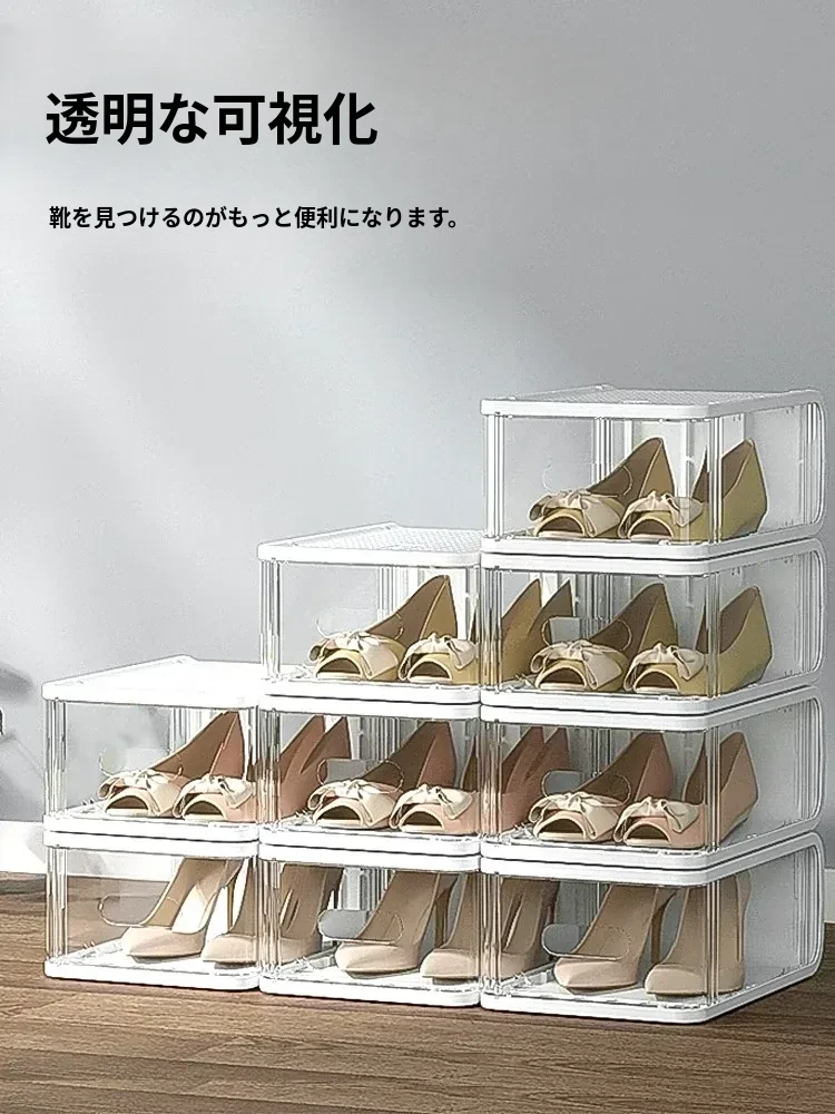透明シューズボックス - スペースを有効活用!AJスニーカーもすっきり収納できる、便利なプラスチック製引き出し式シューズケース。整理整頓を楽しもう!