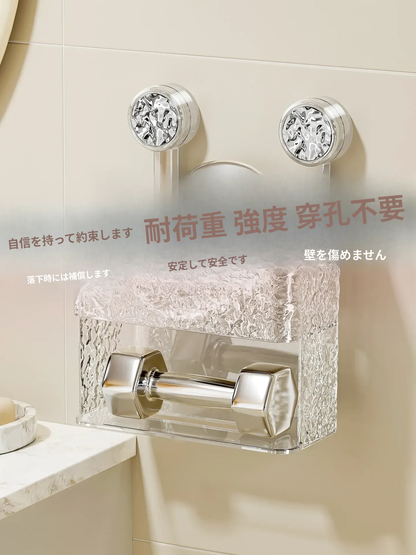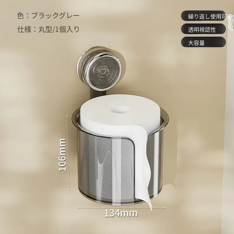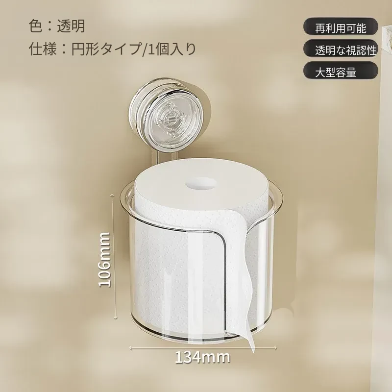 【透明シルバー】円筒型トイレットペーパーホルダー⭐強力吸盤