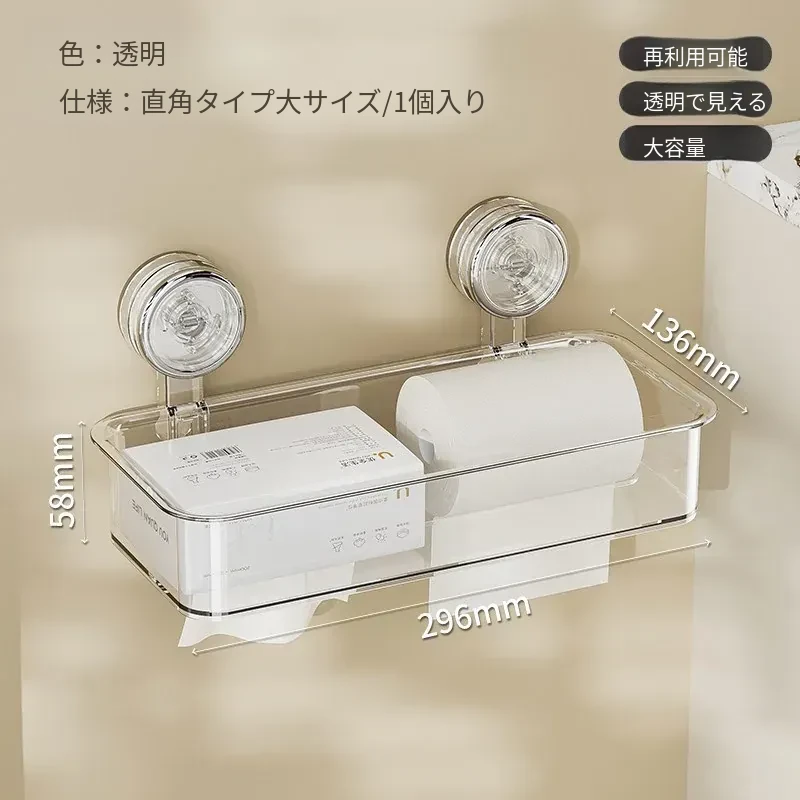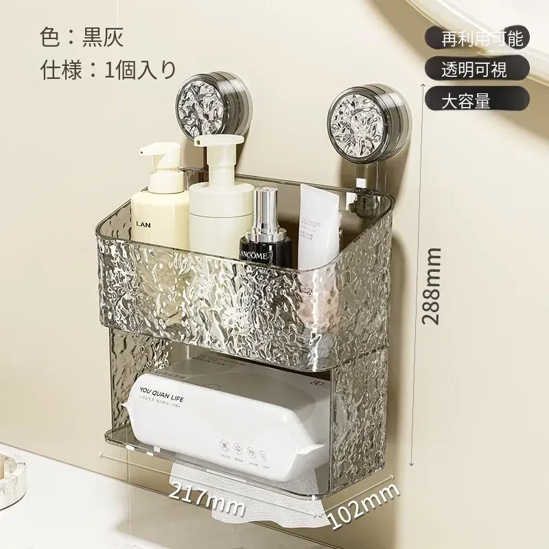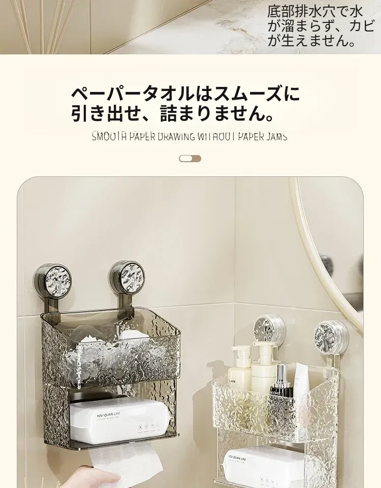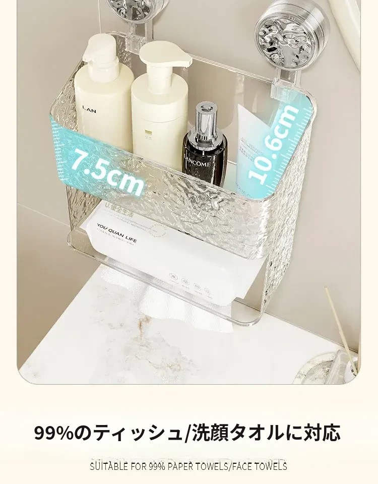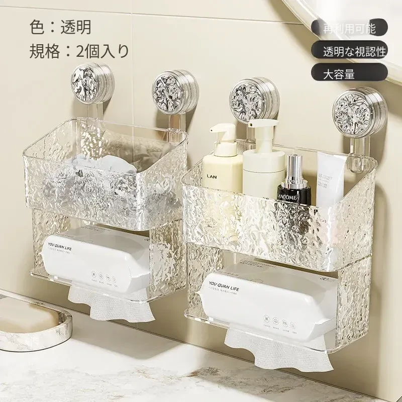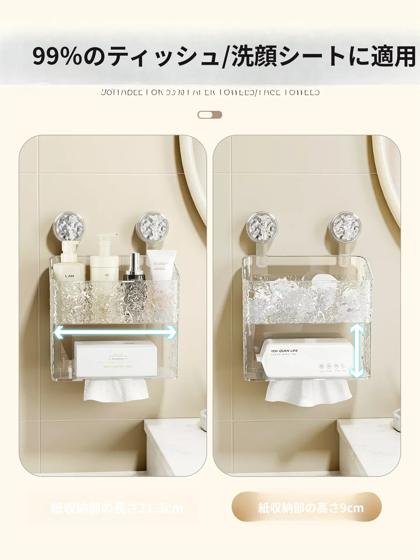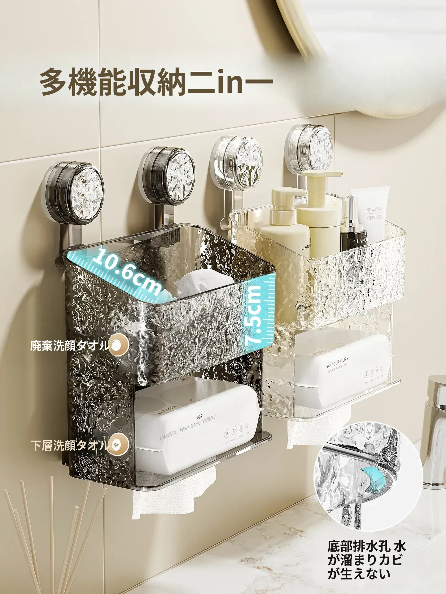 吸盤式洗顔タオル収納ボックス 壁掛け多機能トイレ・バスルーム用 使い捨てフェイスタオル・コットンタオル用ラックで、スペースを有効活用!清潔感あふれるおしゃれな収納アイテムです。