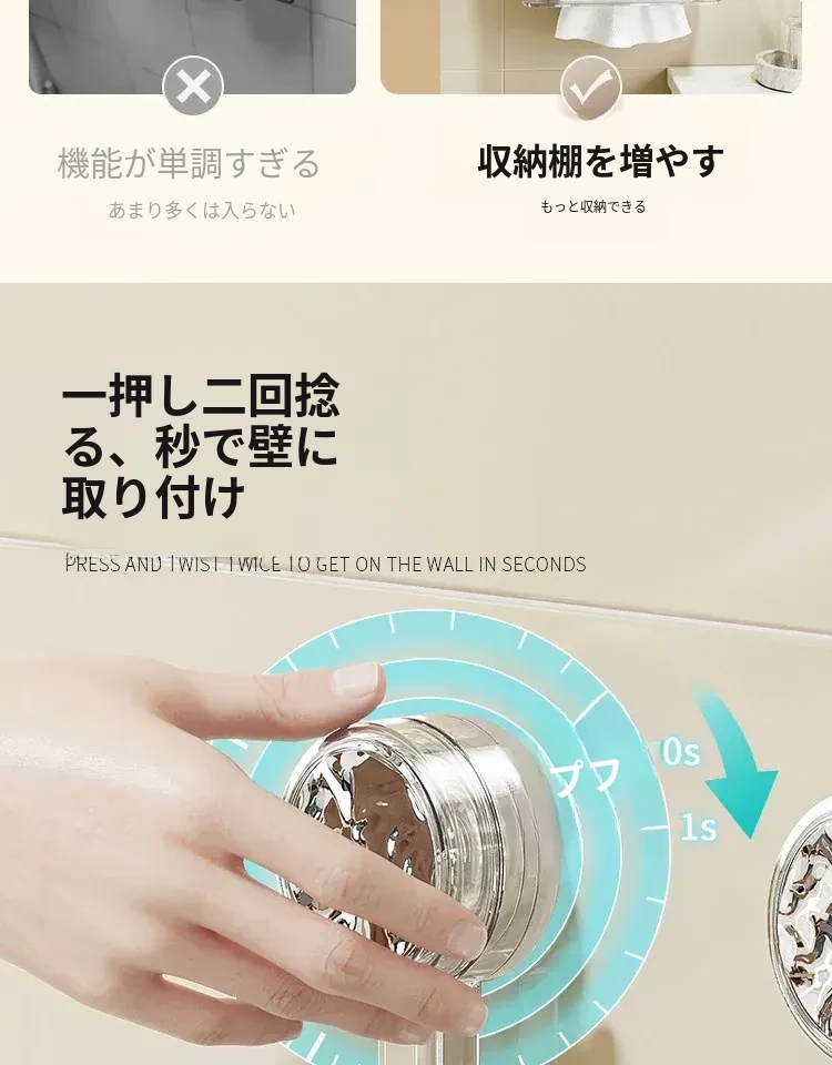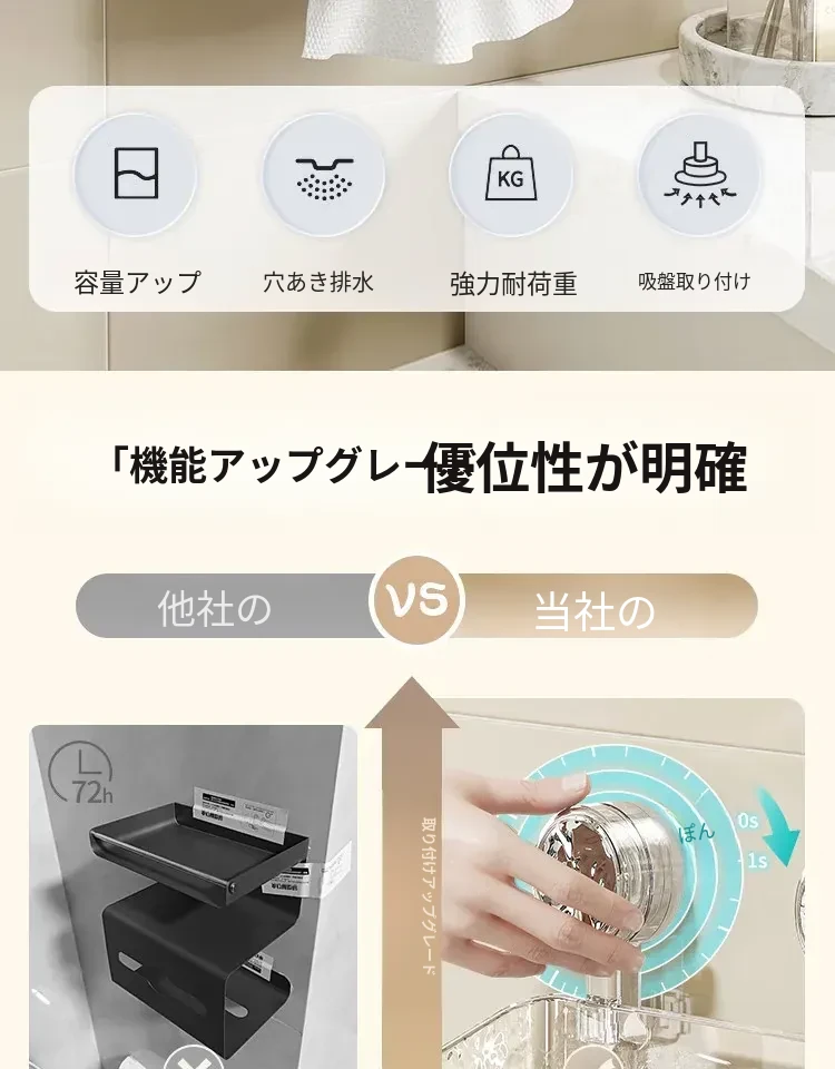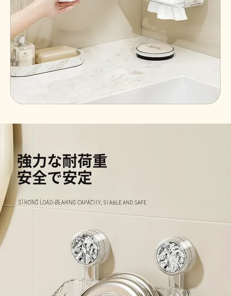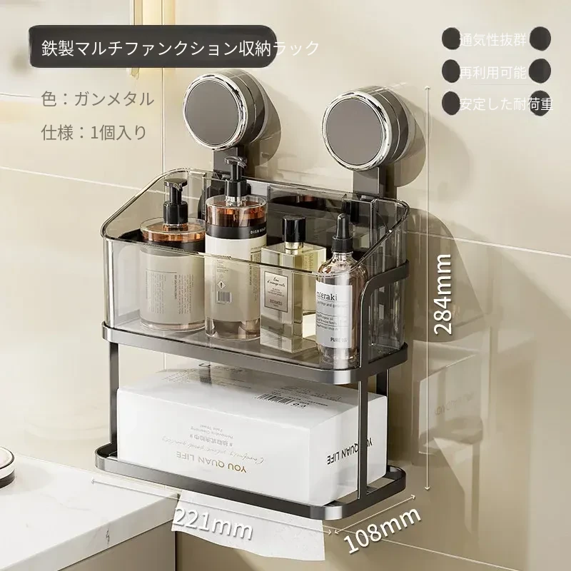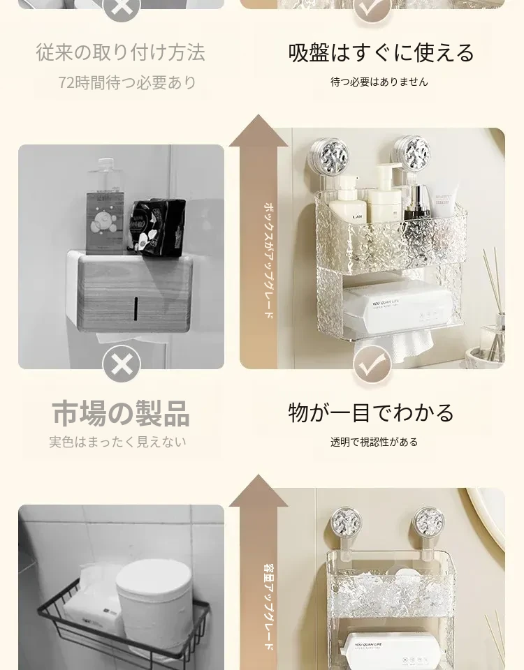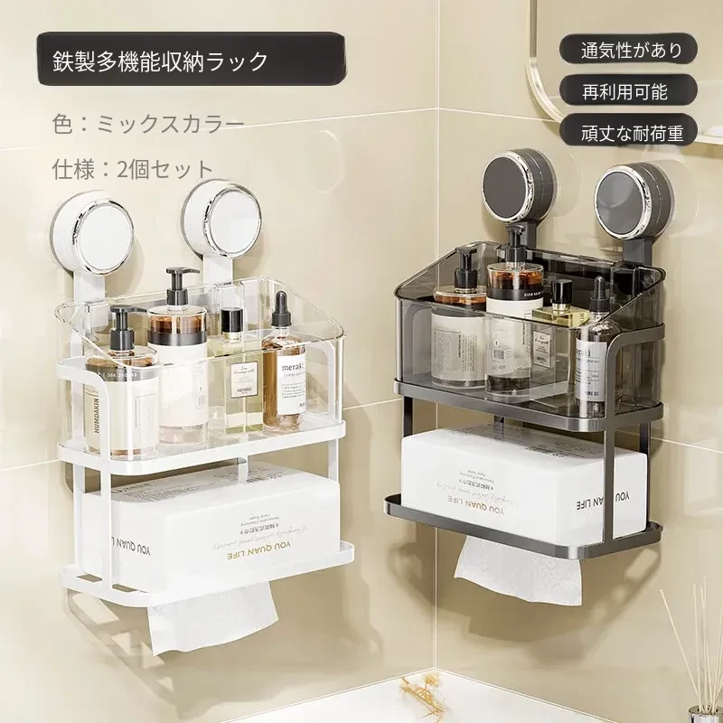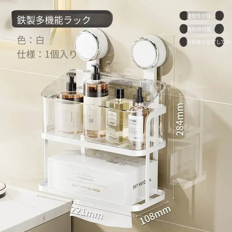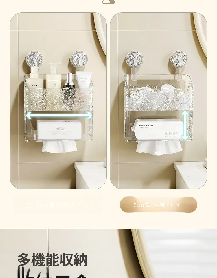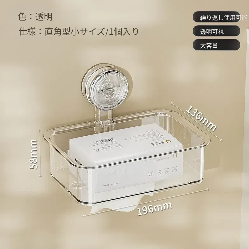 吸盤式洗顔タオル収納ボックス 壁掛け多機能トイレ・バスルーム用 使い捨てフェイスタオル・コットンタオル用ラックで、スペースを有効活用!清潔感あふれるおしゃれな収納アイテムです。