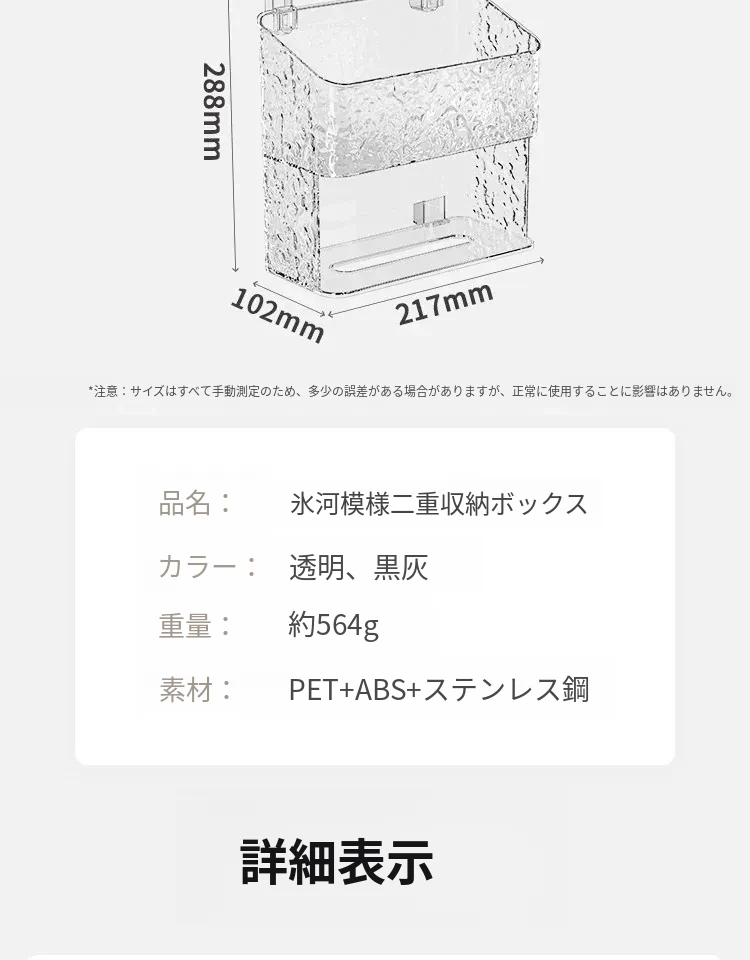 【透明シルバー】収納ボックス大サイズ ❤ 大容量/水切り付き