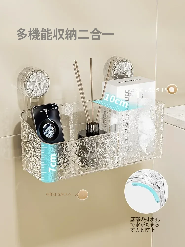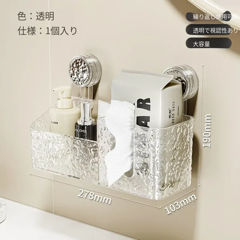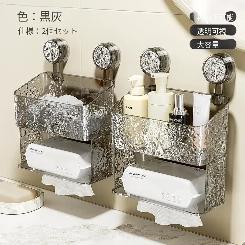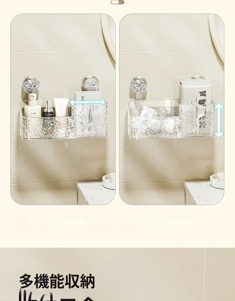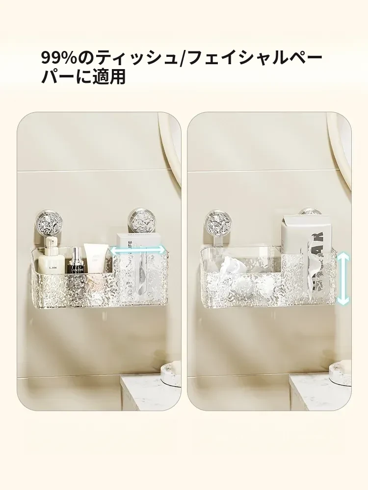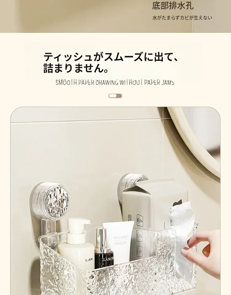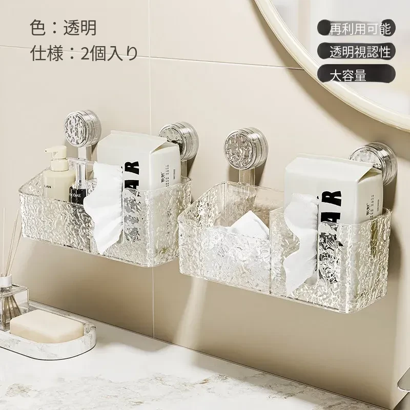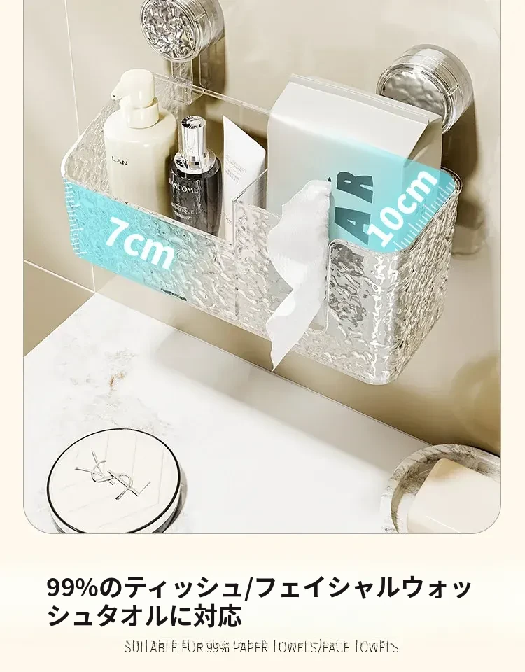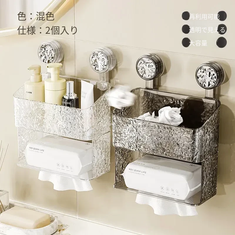 吸盤付き洗顔タオル収納ボックス - バスルームの壁掛け化粧品ゴミ箱、使い捨てフェイスタオルスタンド、浴室用ティッシュボックスで、すっきりとした空間を実現!
