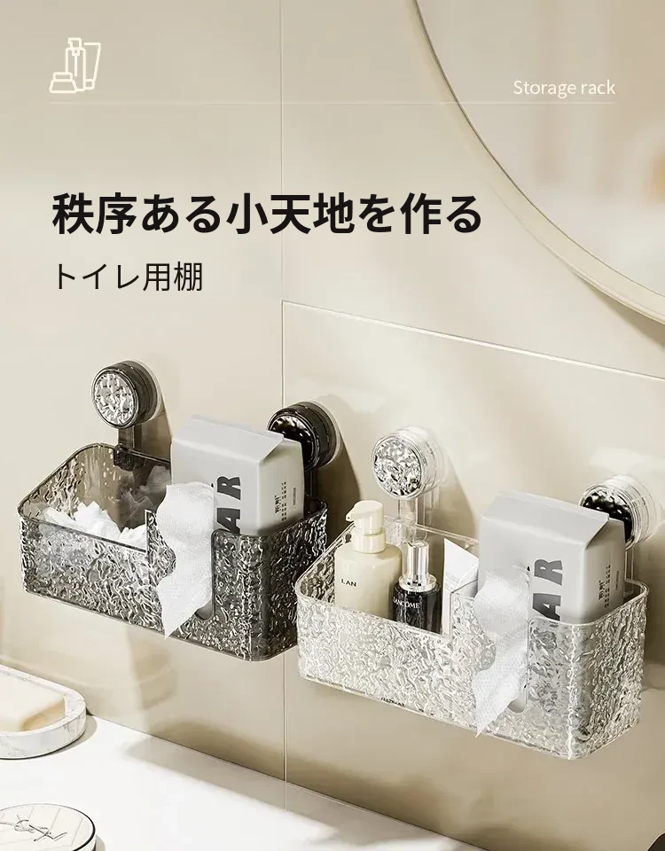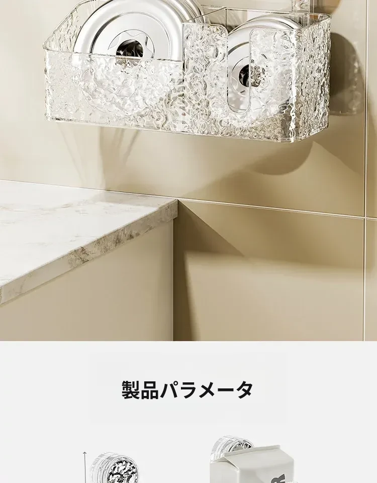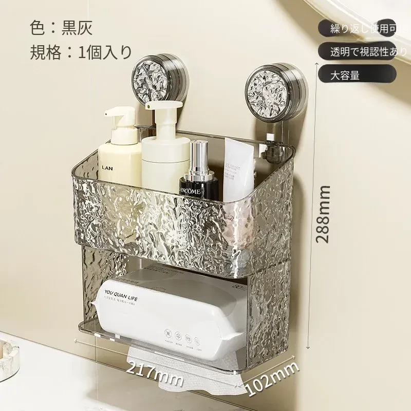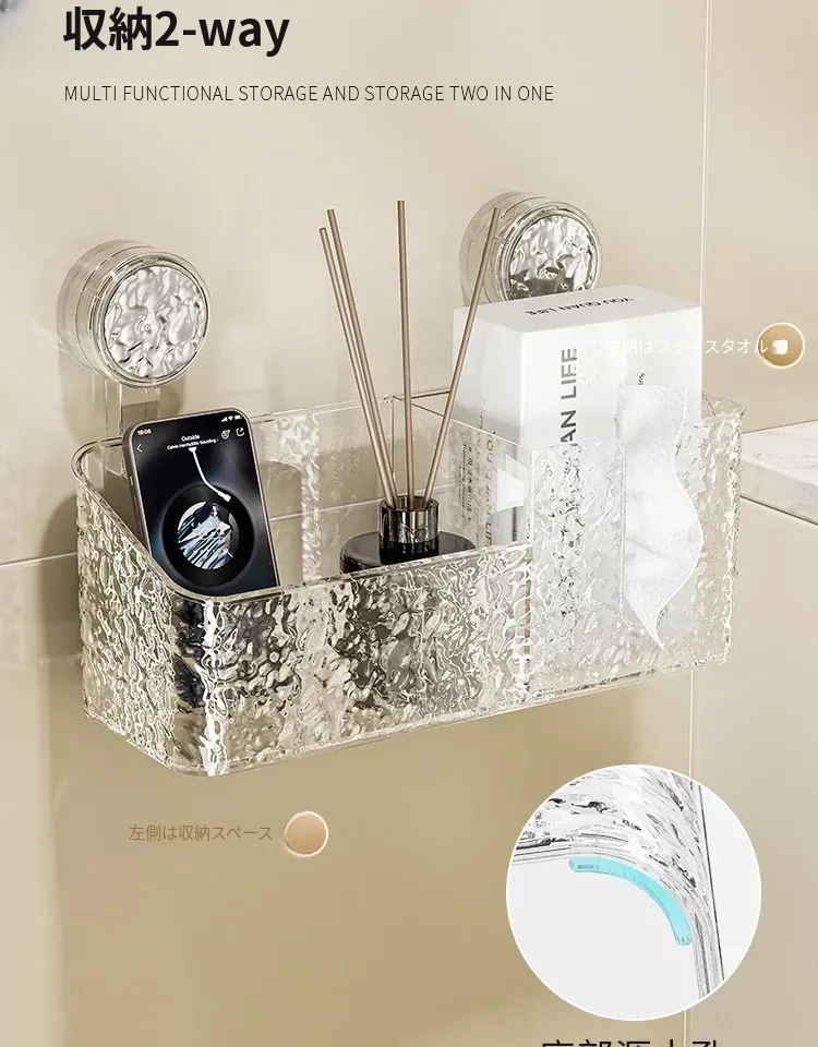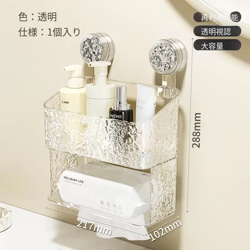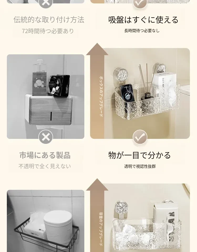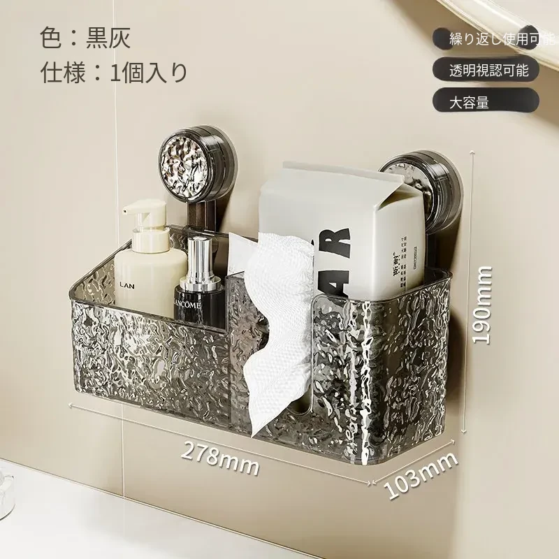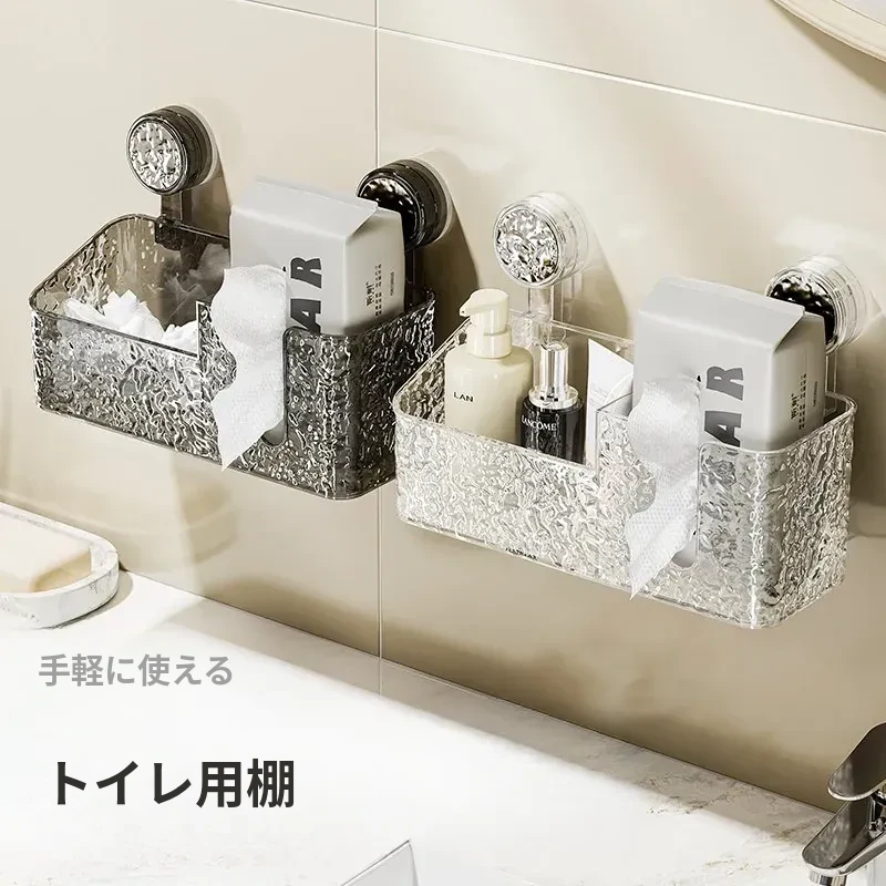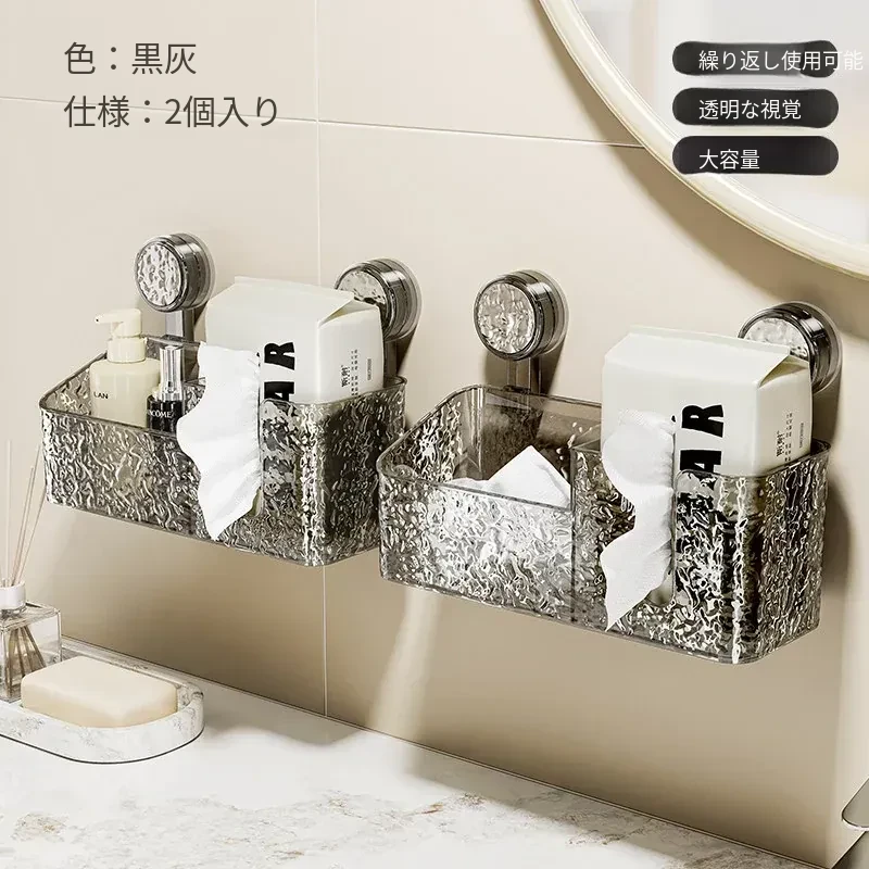 吸盤付き洗顔タオル収納ボックス - バスルームの壁掛け化粧品ゴミ箱、使い捨てフェイスタオルスタンド、浴室用ティッシュボックスで、すっきりとした空間を実現!
