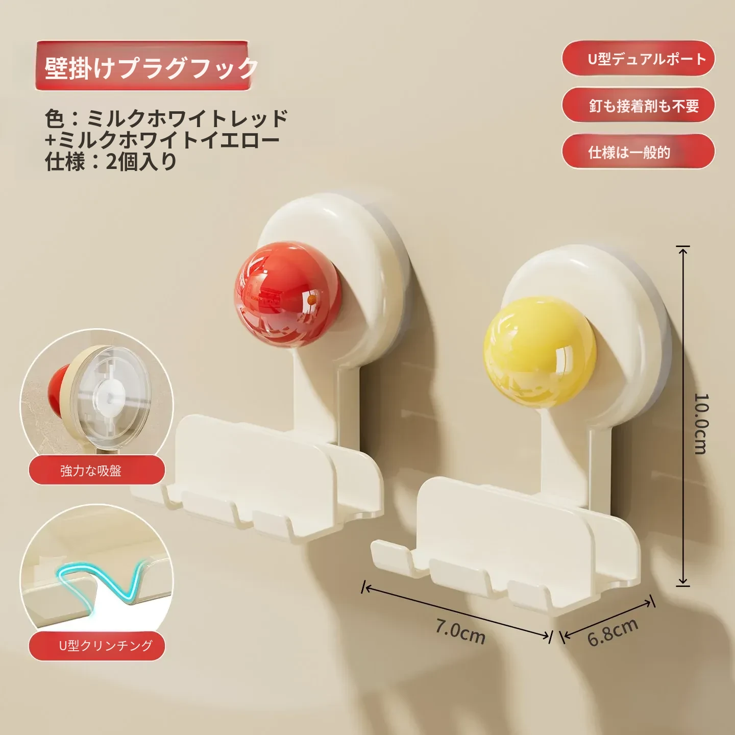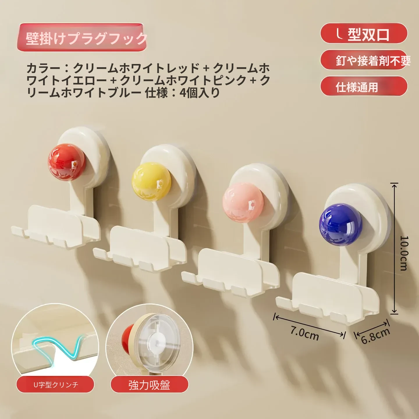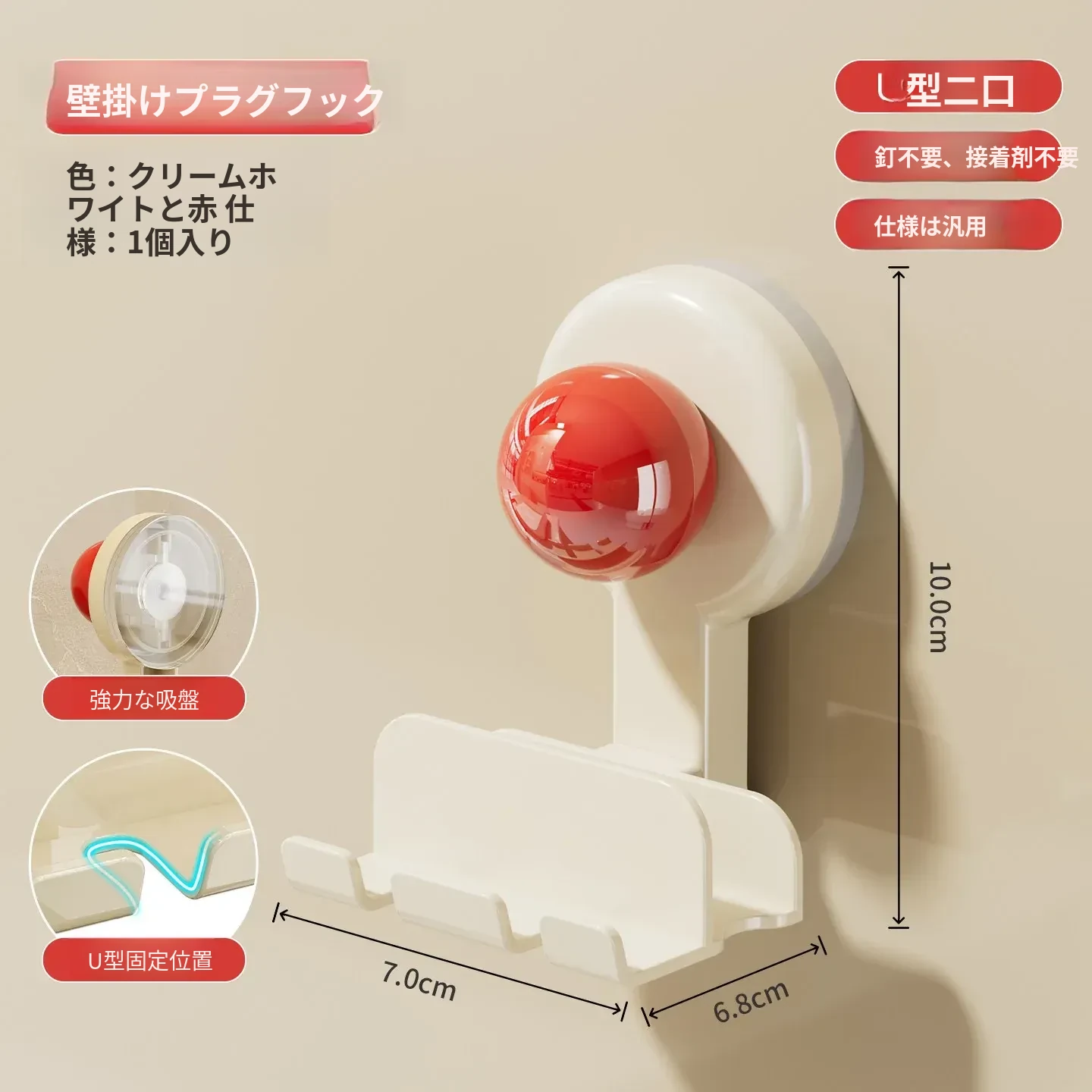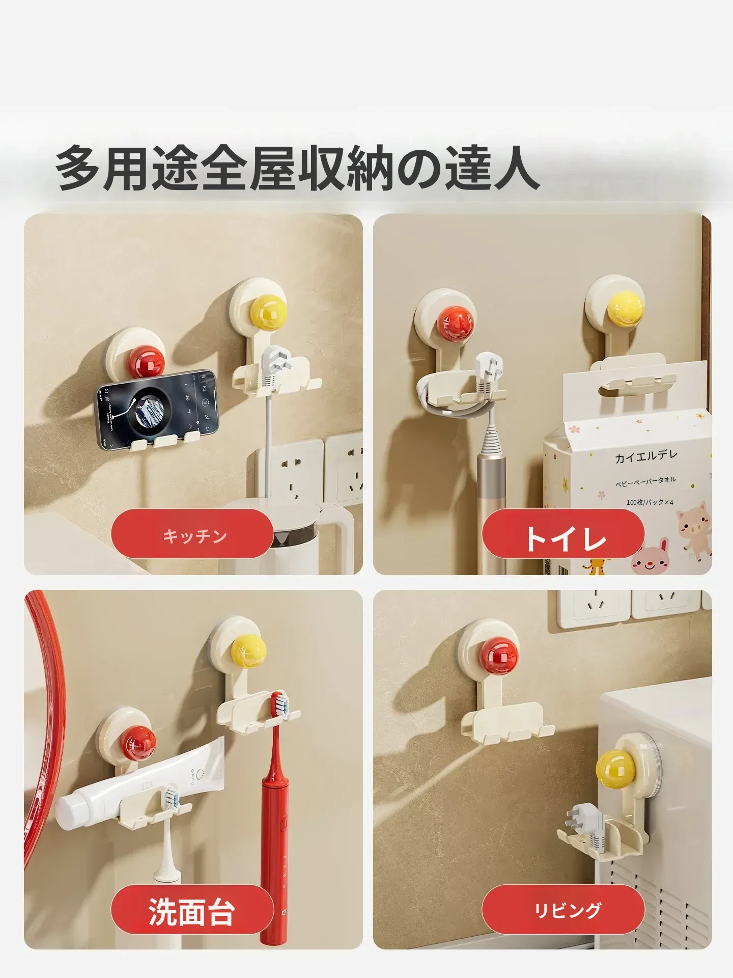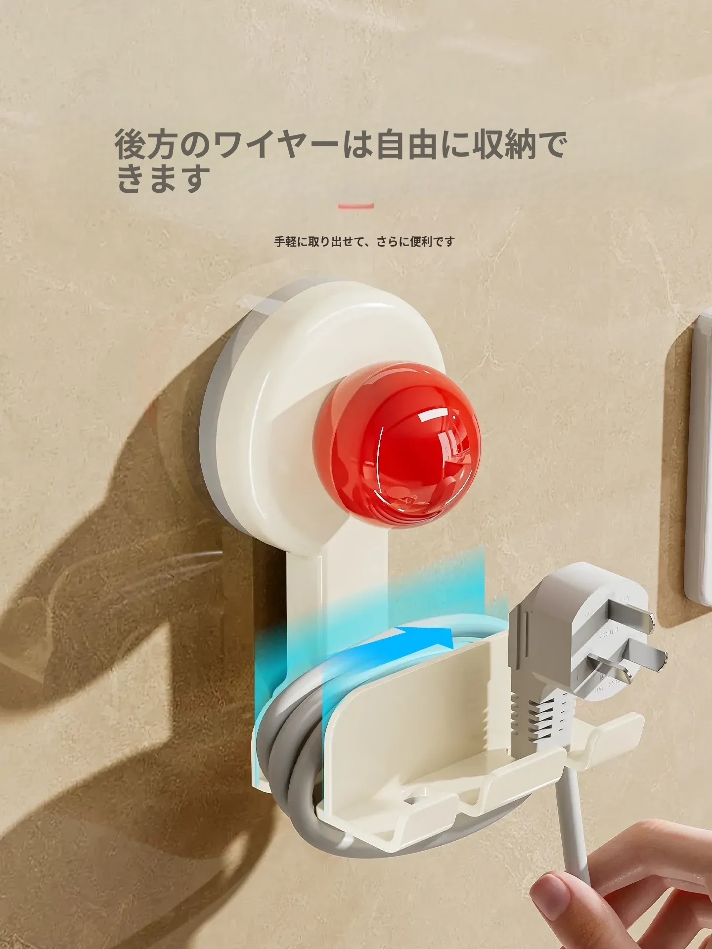 吸盤式プラグ固定器 壁掛けタイプ 取り付け不要の収納便利グッズ キッチン家電の電源コードをしっかり固定するフックで、配線をスッキリ整理!