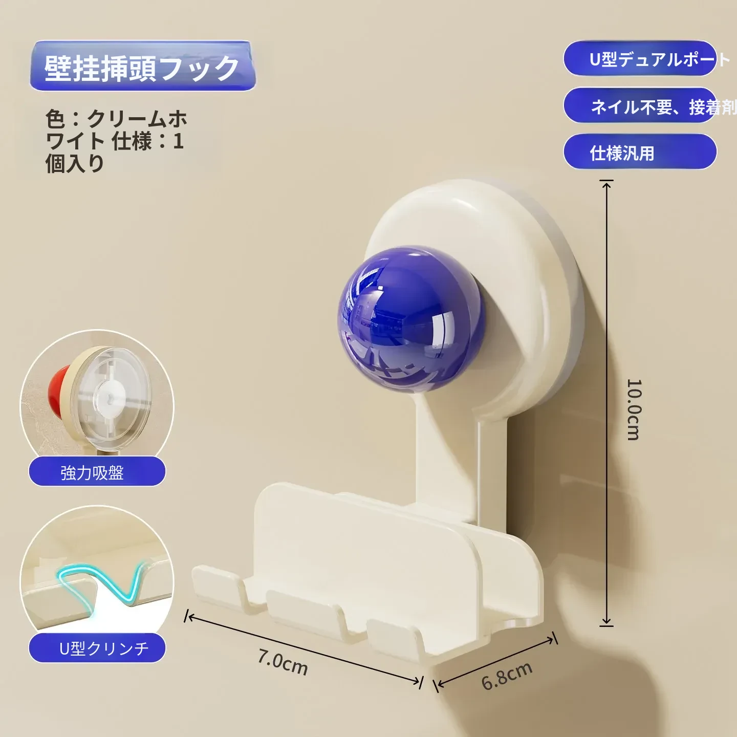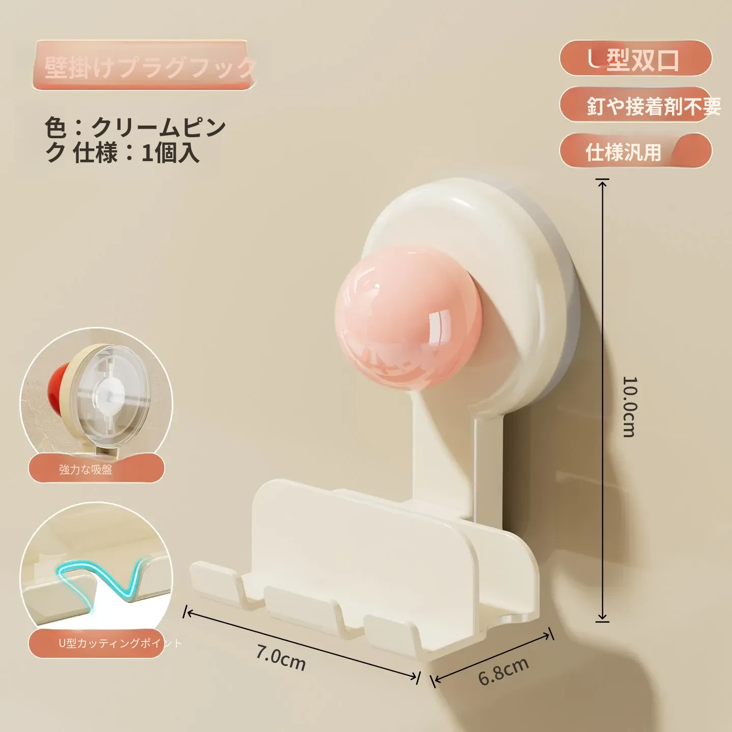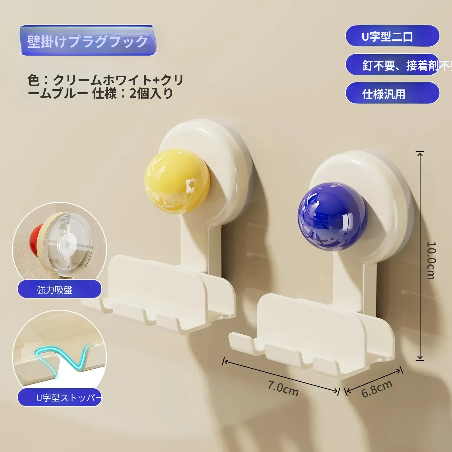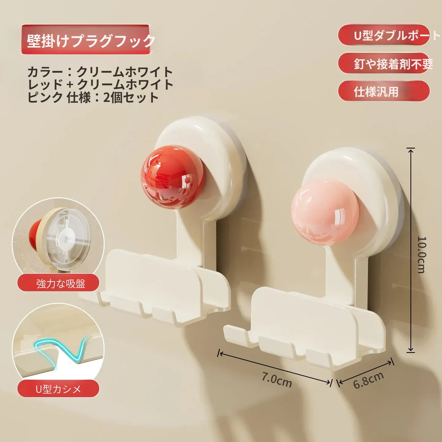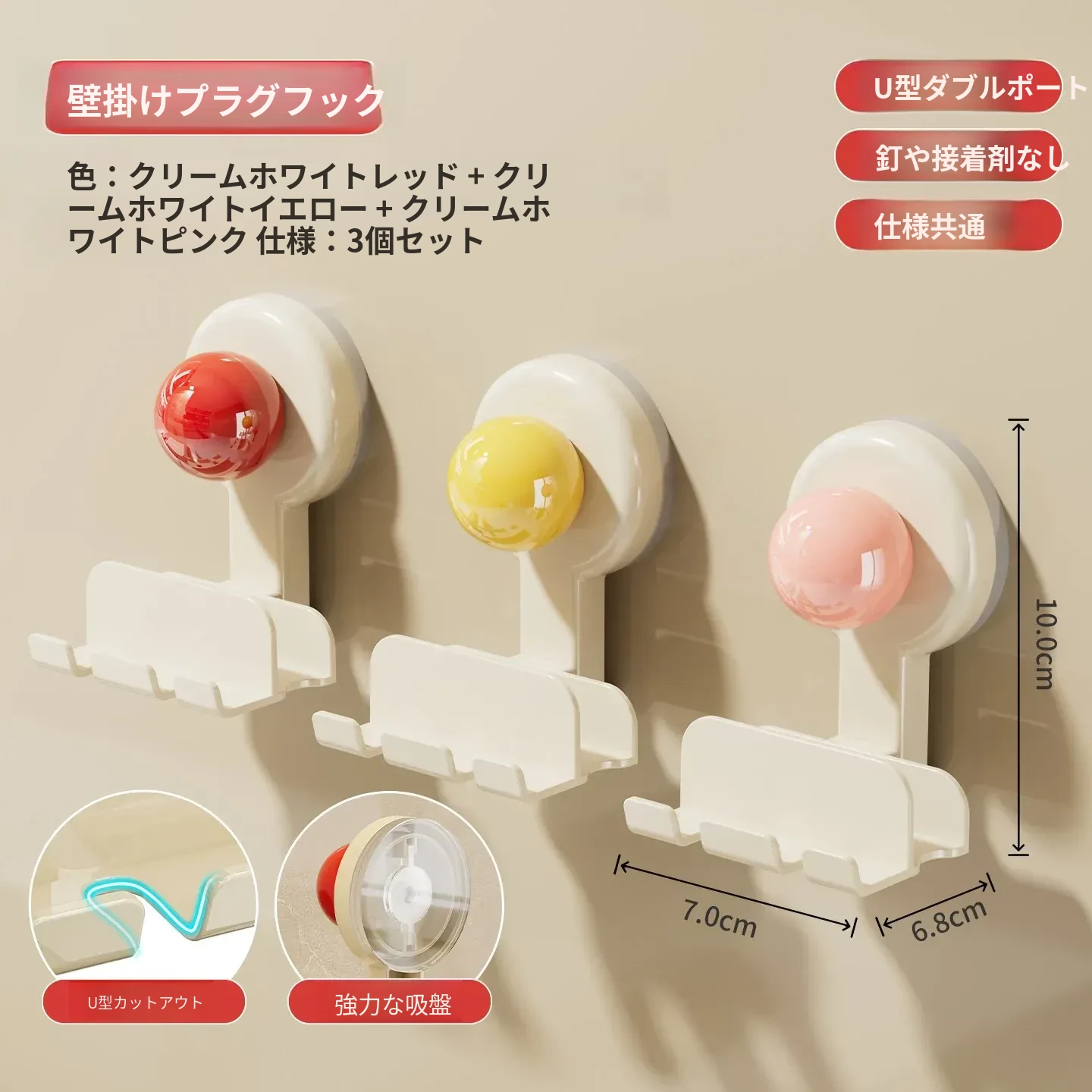 吸盤式プラグ固定器 壁掛けタイプ 取り付け不要の収納便利グッズ キッチン家電の電源コードをしっかり固定するフックで、配線をスッキリ整理!