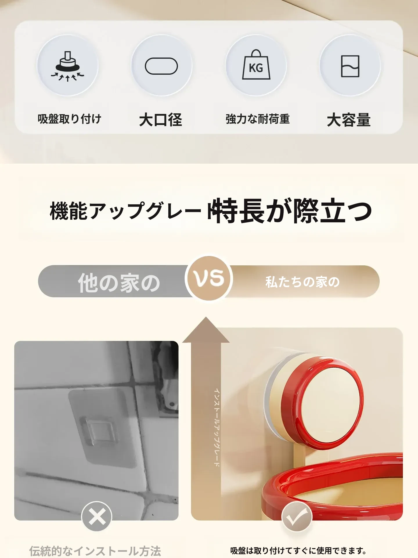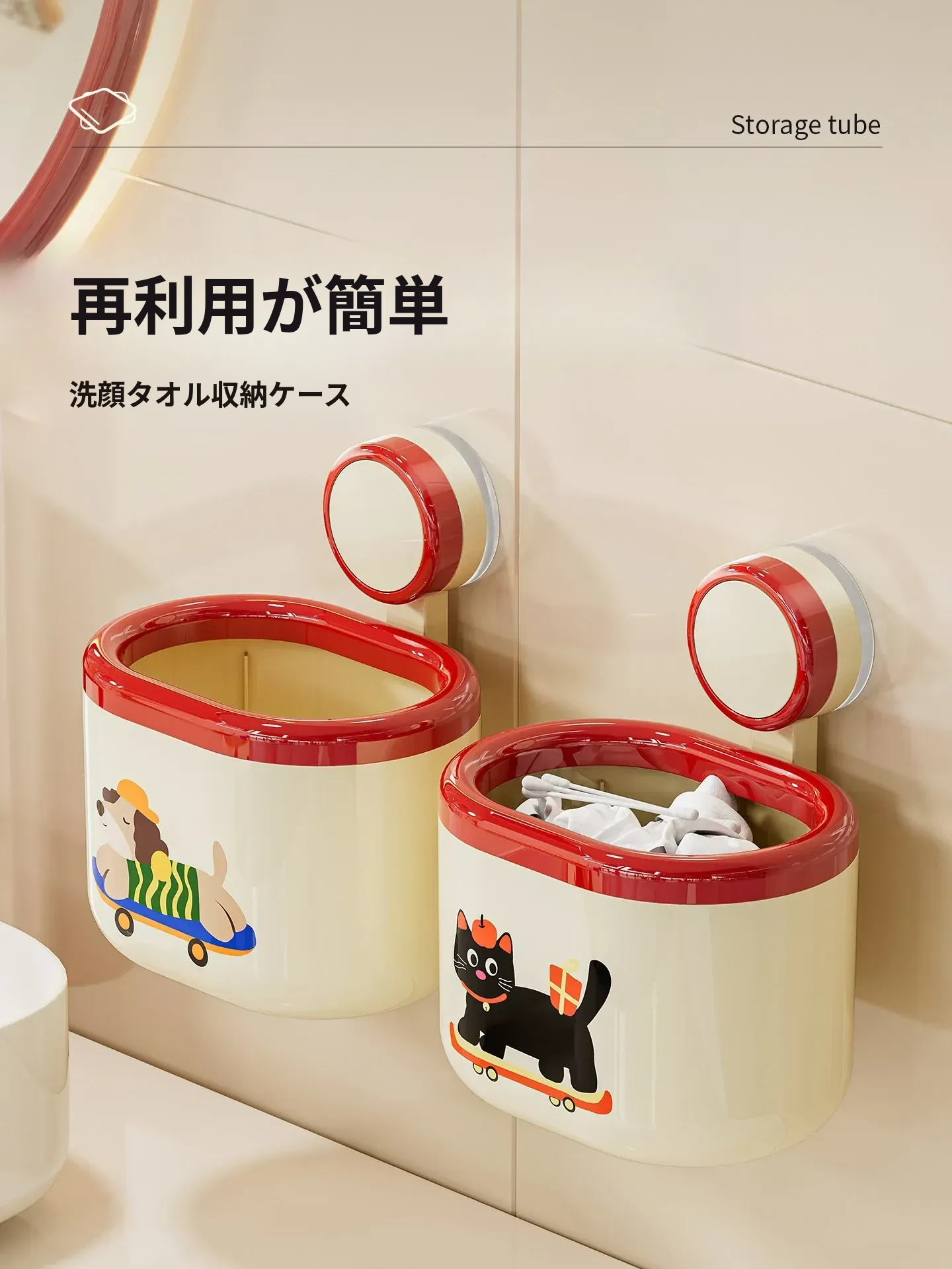 吸盤式洗顔タオル収納ボックス - 壁掛けで省スペース!バスルームやトイレに最適な二次利用の洗面台用タオルラック。クリーンでスタイリッシュなデザインで、いつでも清潔なタオルを手元に!